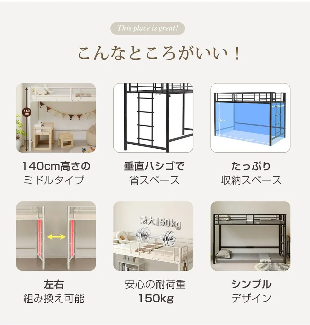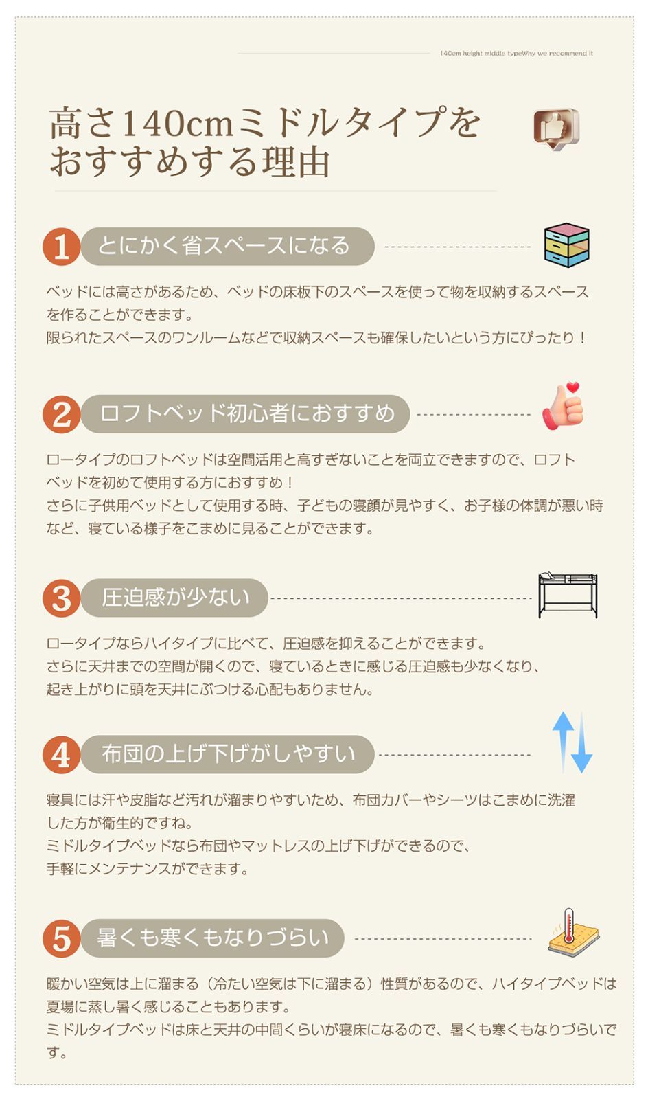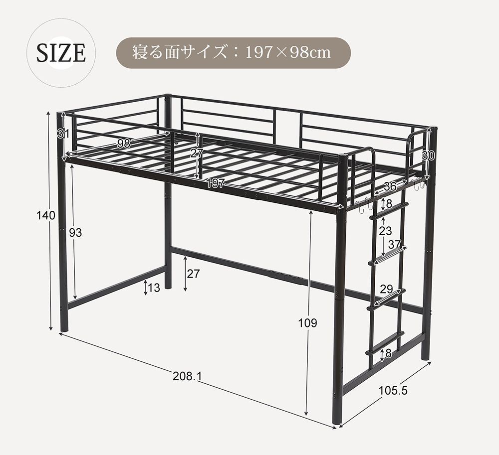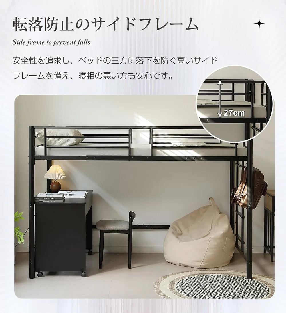 ロフトベッド ミドルタイプ ロフトベット パイプベッド ロフト シングル ロータイプ 左右入れ替え 大人用 子供ベッド ミドルベッド 子供 ベッド 小さめ シングルベッド 下収納 省スペース スチール 子供部屋 はしご付き