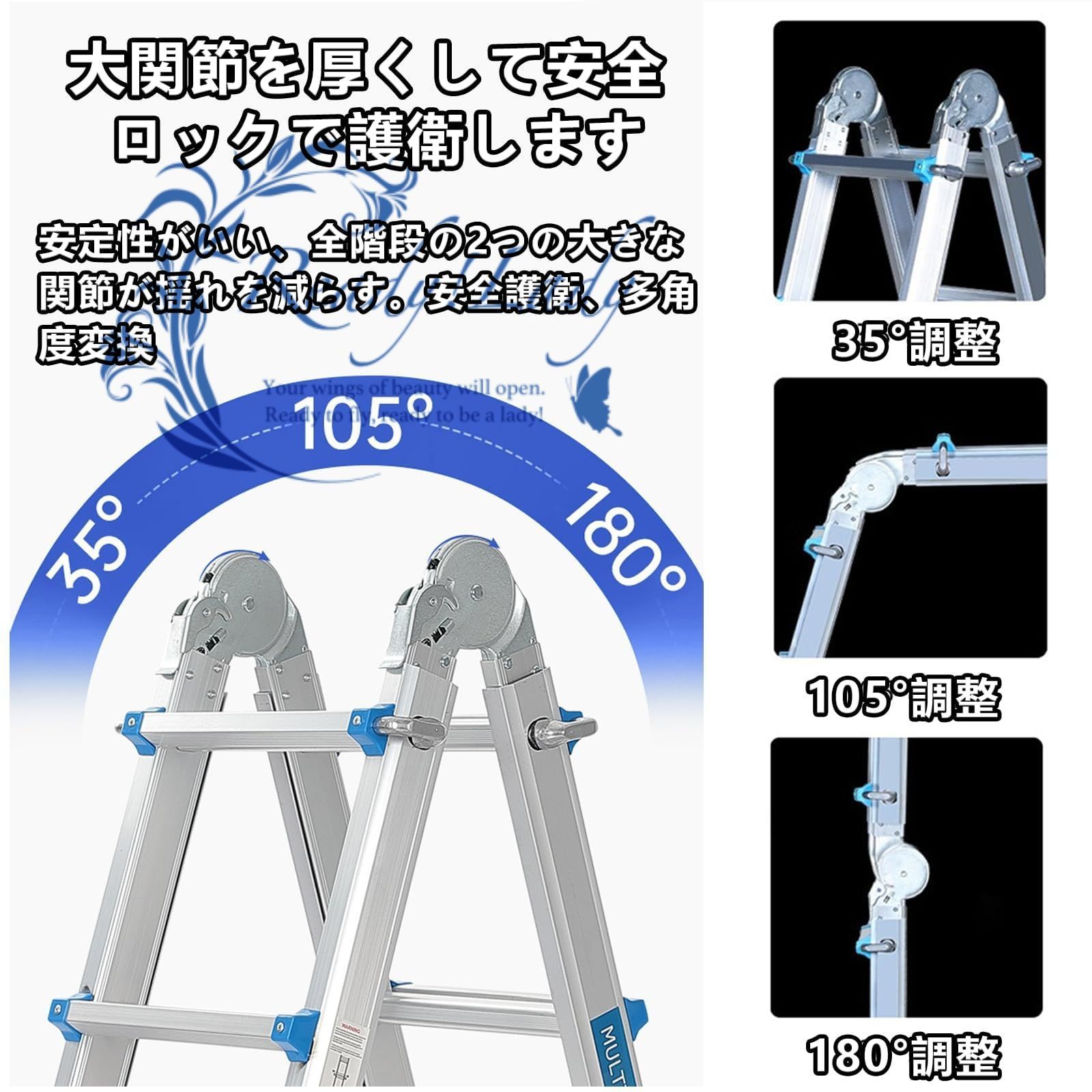 【多機能設計】- このはしごは、さまざまなニーズに応えるために注意深く設計された多機能ツールです。調節可能な機能を備えており、Aフレームはしご、伸縮はしご、90度階段など、さまざまな形態に変換することができます。家庭や建物のメンテナンス、窓の清掃、屋内外の装飾、ペイント作業など、さまざまなタスクに使用することができ、作業をより効率的かつ便利にします。