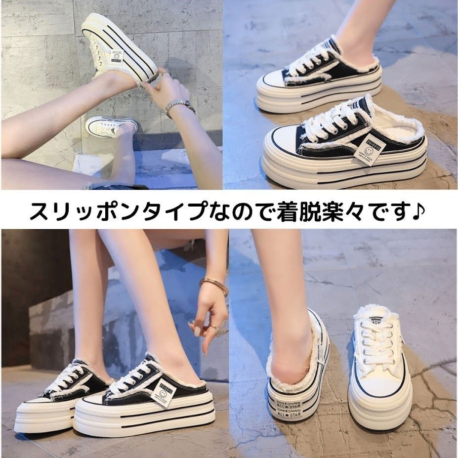 スニーカー レディース 厚底 かかとなし スリッポン キャンバス カジュアル 脚長 美脚 着脱 楽々 韓国 にこちゃんマーク