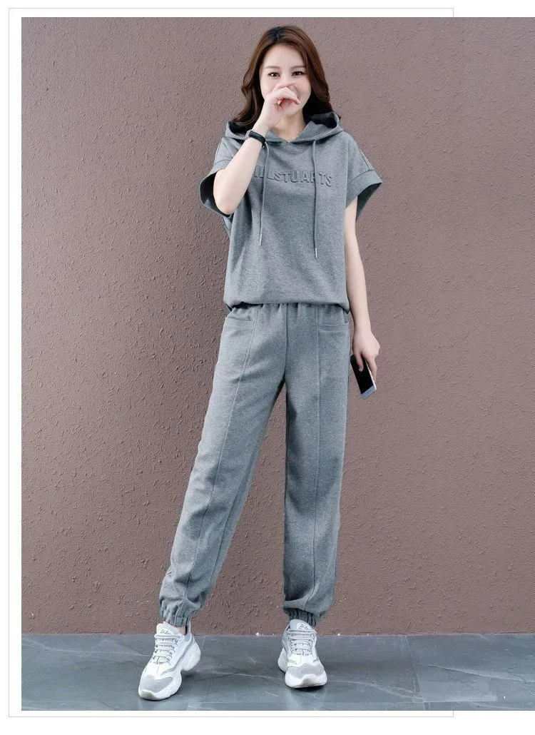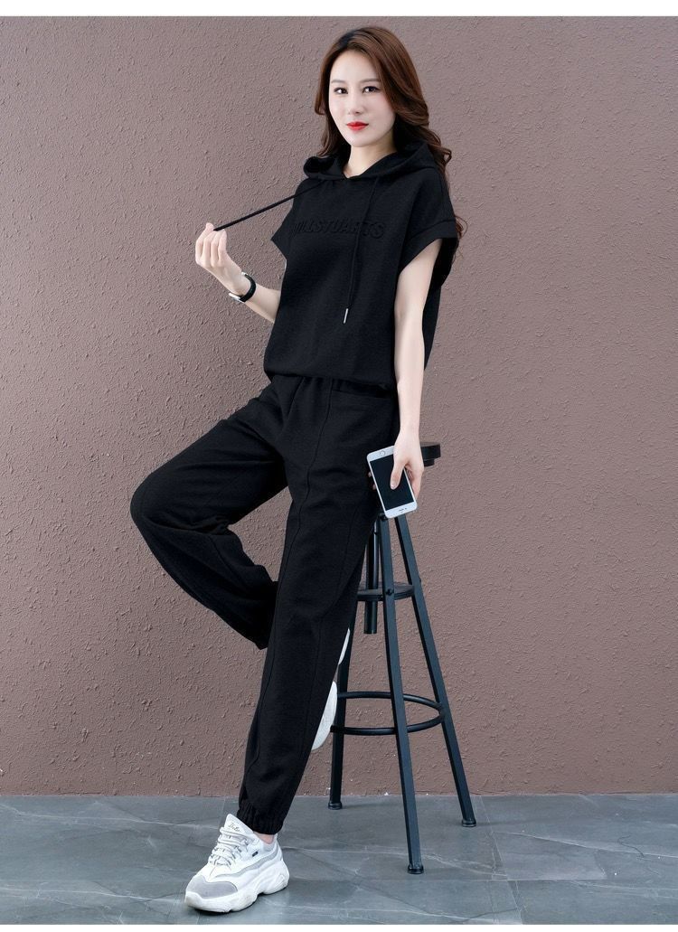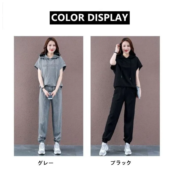セットアップ 上下セット パーカー トップス フード付き 半袖 スポーツ 運動着 ボトムス ロングパンツ 大人 かわいい 夏 シンプル カジュアル おしゃれ ホームウェア 体型カバー 上品 夏服