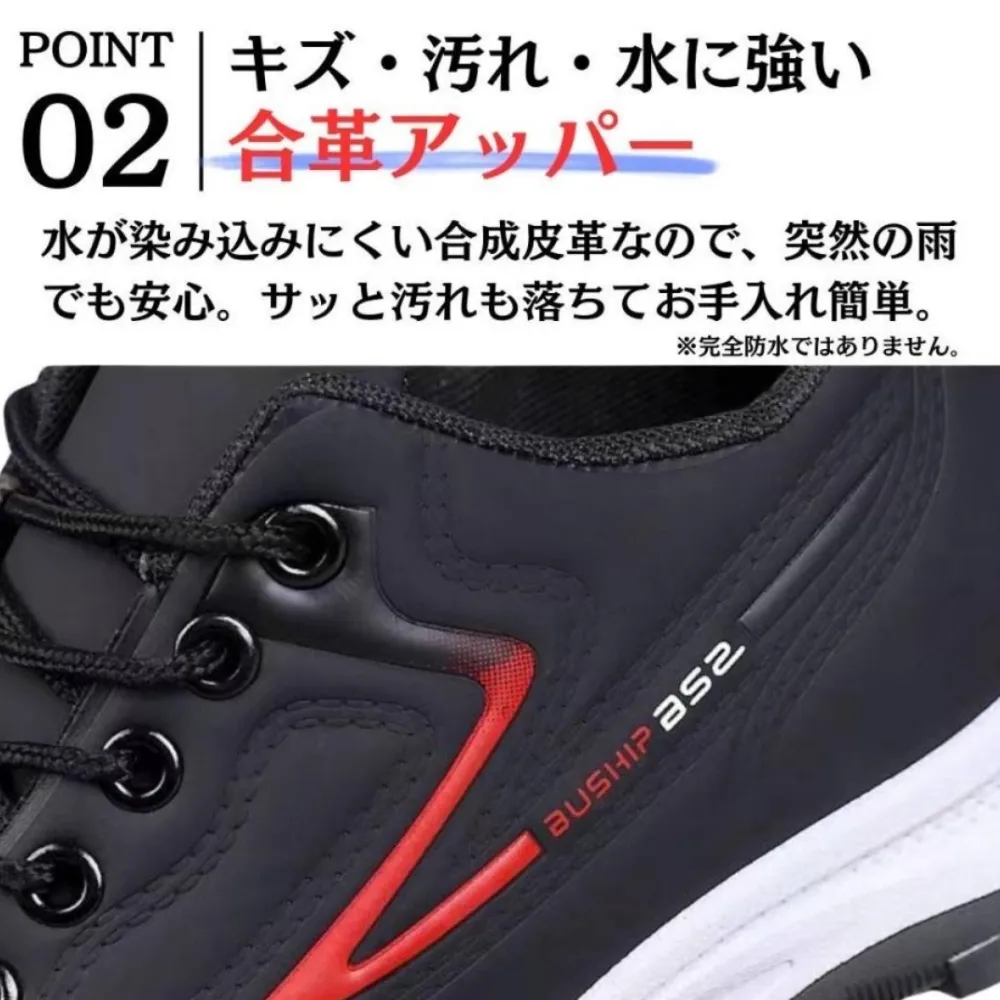 ◯アッパーはPUレザー素材で防水性に優れ、中に水が染み込みにくく汚れにも強い