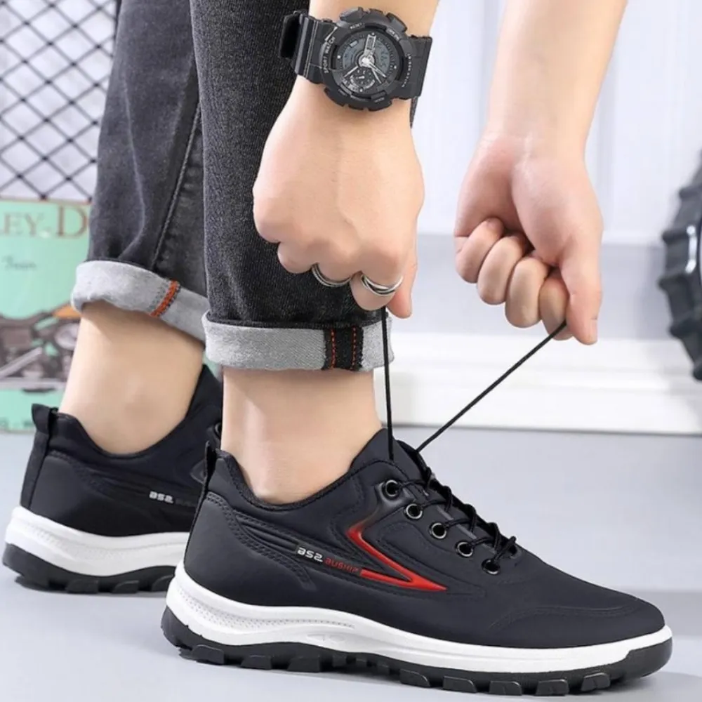 スニーカー メンズ グレー レッド レザーシューズ フェイクレザー 防水 滑りにくい 履きやすい シンプル カジュアル 革靴