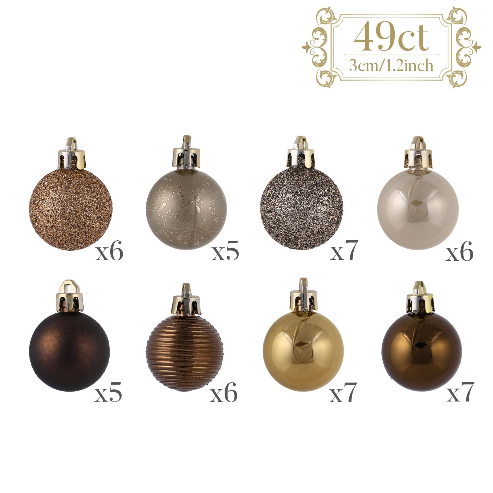 Valery Madelyn 北欧風 クリスマス オーナメント 3cm 49個入り ゴールド・コッパー ミニ サイズ ボール オーナメント クリスマス ツリーオーナメント ツリー飾り 飾り付け おしゃれ ゴージャス ゴールド ブラウン 金銅色