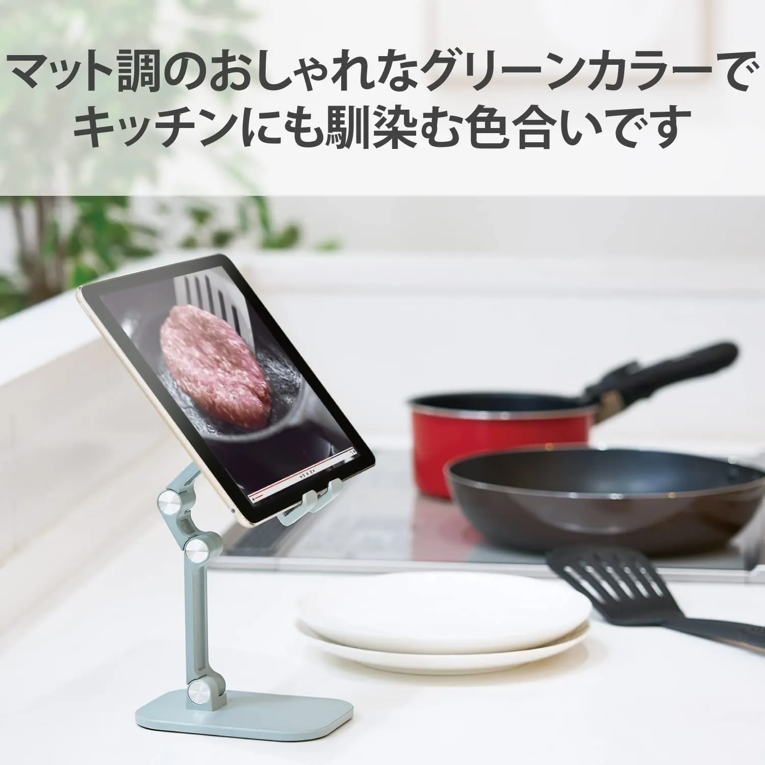新商品 Android、ipad、iPhone、Switch対応 グリーン コンパクト収納 折り畳み式 料理 キッチン向け HA-STFD01GN スマホスタンド タブレットスタンド エレコム