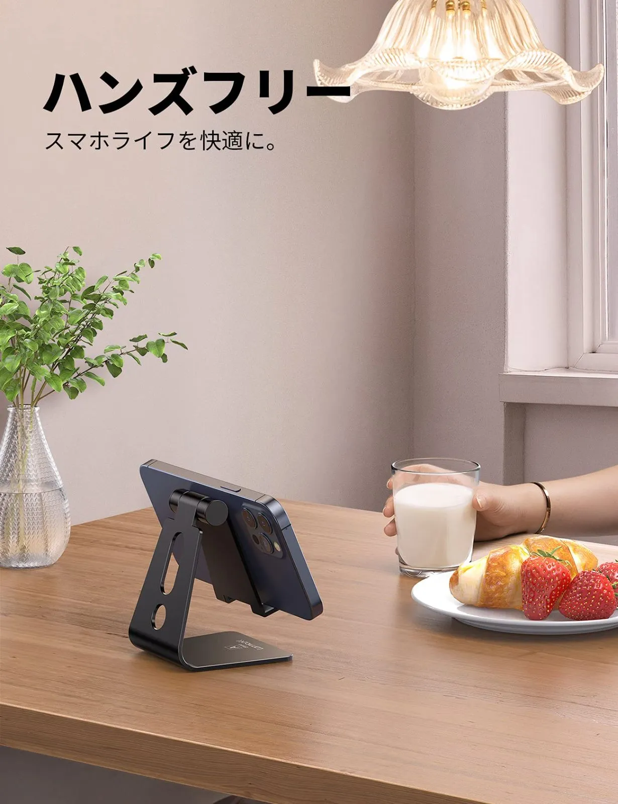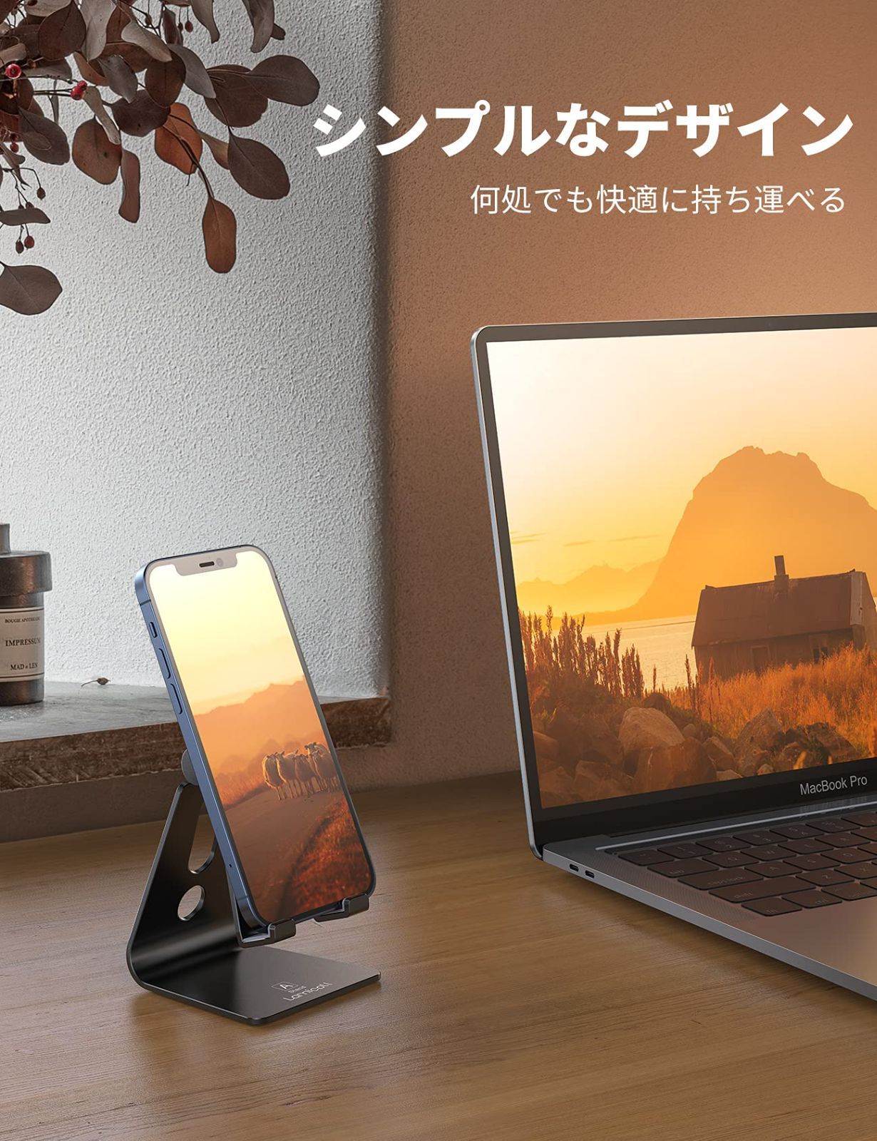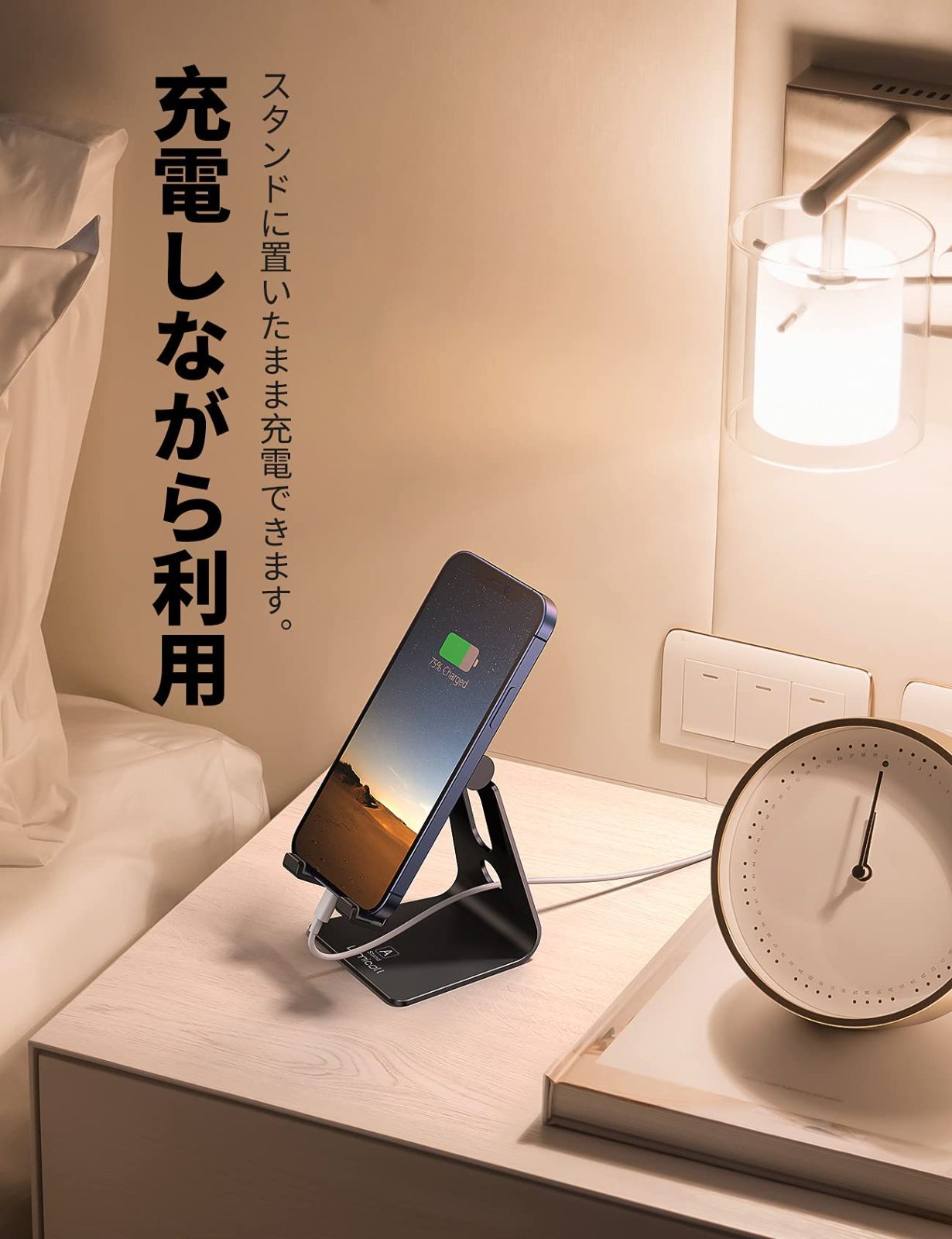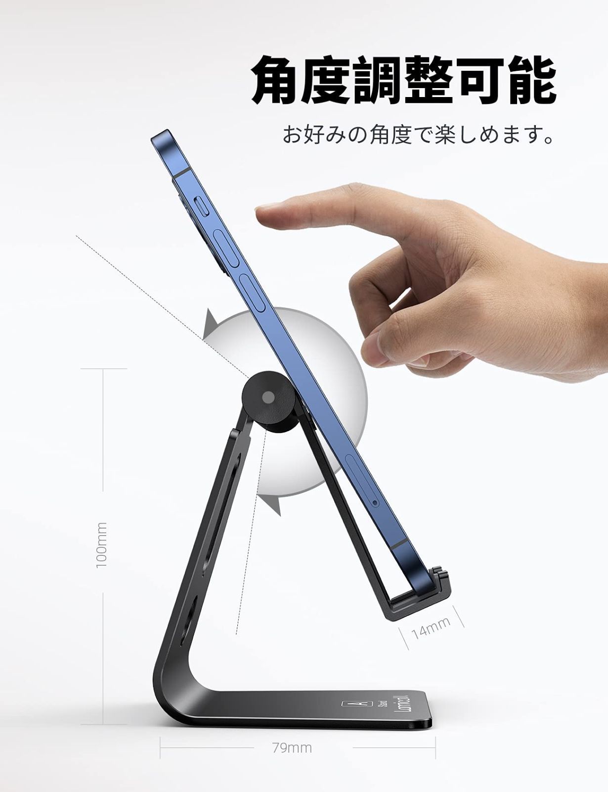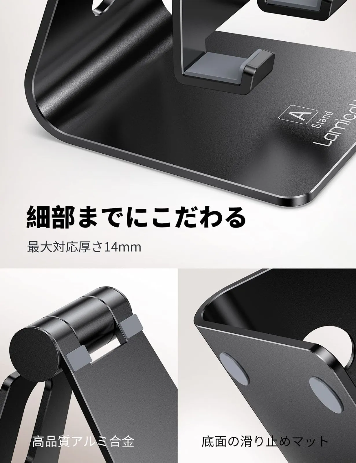 Lomicall スマホ スタンド アルミ ホルダー 角度調整 : 携帯 卓上 横 縦 スマフォスタンド アイフォン デスク 置き台 アイフォン アンドロイド iPhone 17 Air 16 15 14 plus pro promax 13 mini 12 11 プロ マックス XS XR 8 7 6 5 se Huawei p20 p30 Xperia android対応 黒 ブラック
