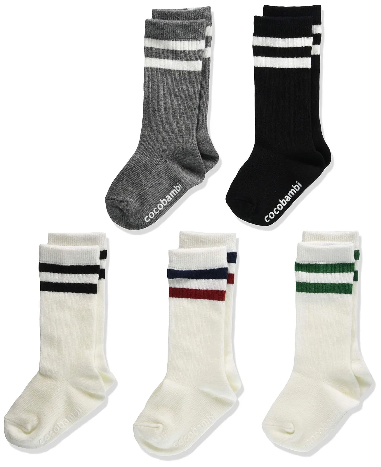 5足組ベビー靴下ハイソックス スポーティ2本ライン スベリ止め付 9cm - 14cm