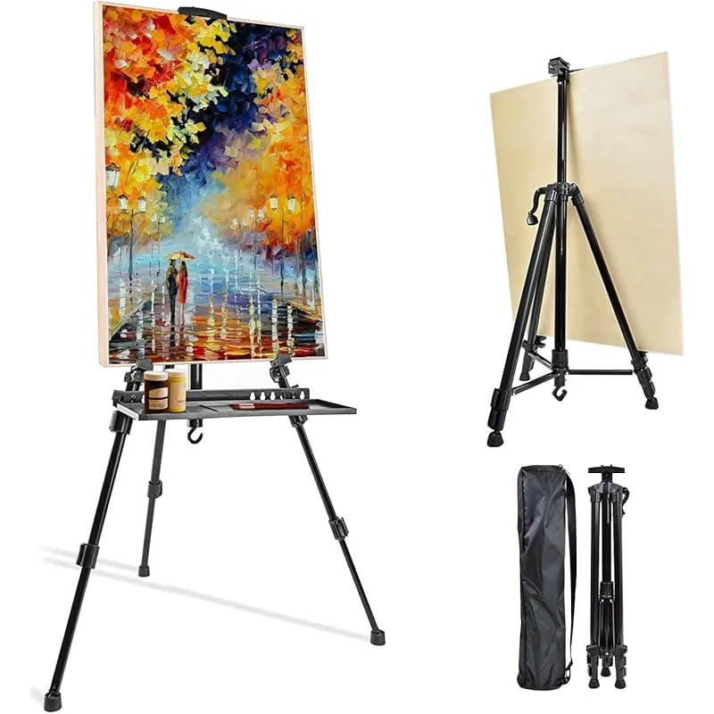 イーゼル 55-160cm スチール製 高さ調節3段式 展示 絵画 装飾 看板 スケッチ 描画 コンパクトに持ち運び 収納袋付き 1