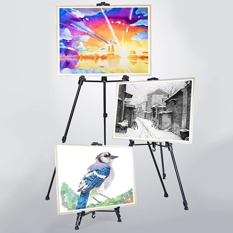 【様々な場所に対応】シンプルで軽くて丈夫な折り畳み式のイーゼルです屋内または屋外での各種芸術展示館、ギャラリー用、店頭のメニューボード用、パネル、看板など汎用性が高く、様々なシーンで大活躍です。特にスケッチや絵画が好きな芸術愛好家に適しています。