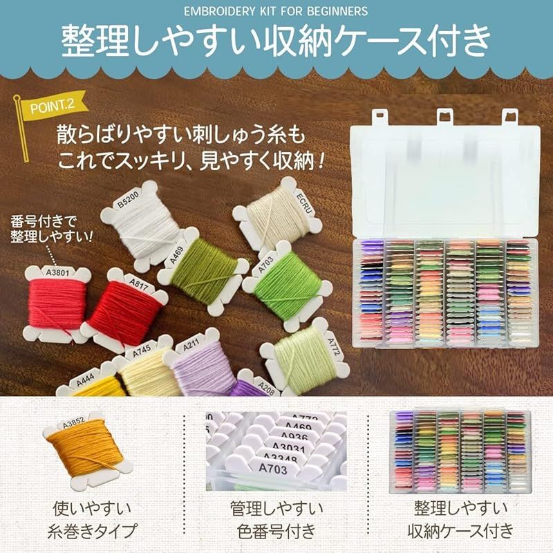 【人気刺繍作家監修】 はじめての 刺繍 セット 解説書 付き 製造元:PaliFu 刺しゅうキット 商品番号:PaliFu 色:120colors 商品タイプ:北欧