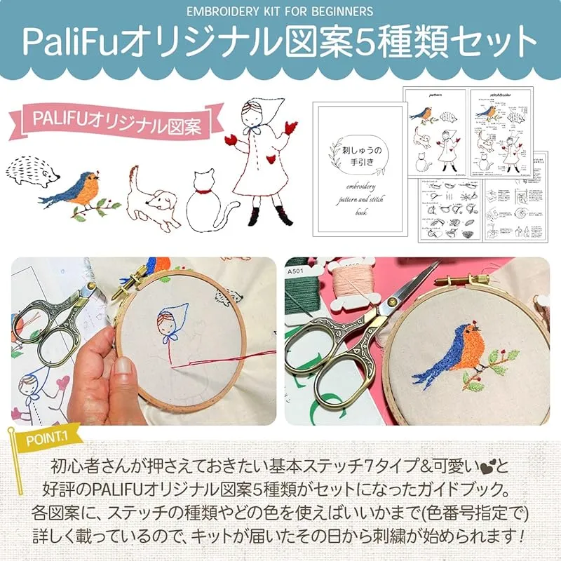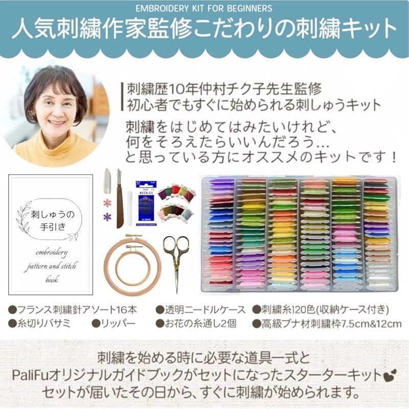 PaliFu 刺繍キット 刺繍糸 120色 刺繍枠 2サイズ 【人気刺繍作家監修】 はじめての 刺繍 セット 解説書 付き 0