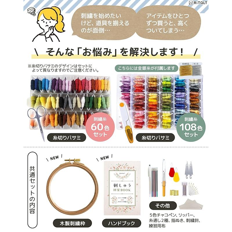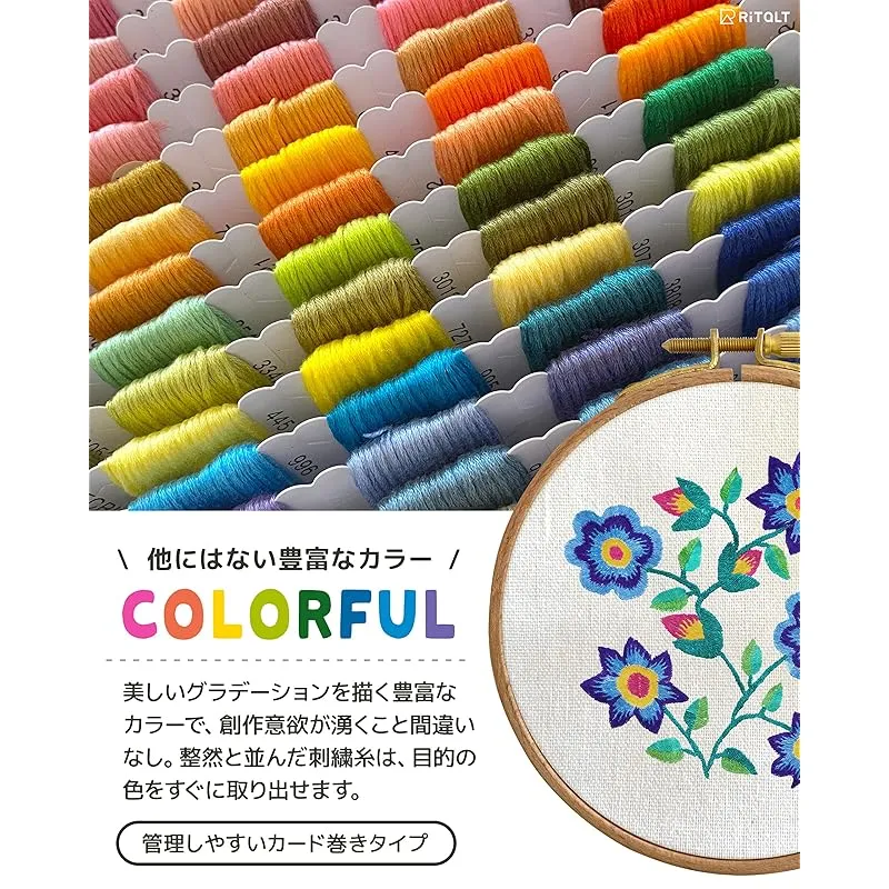 【商品詳細】 ブランド:RITALT 商品種別:刺しゅうキット 商品名:RITALT 刺繍キット 刺繍糸 60色 図案本 刺繍枠 初心者 セット