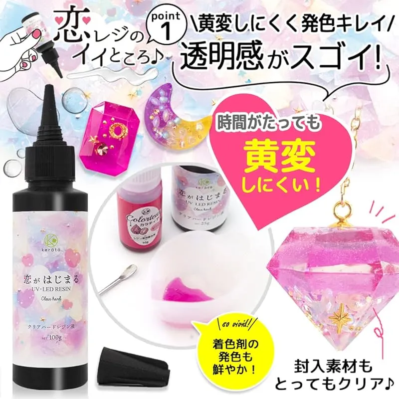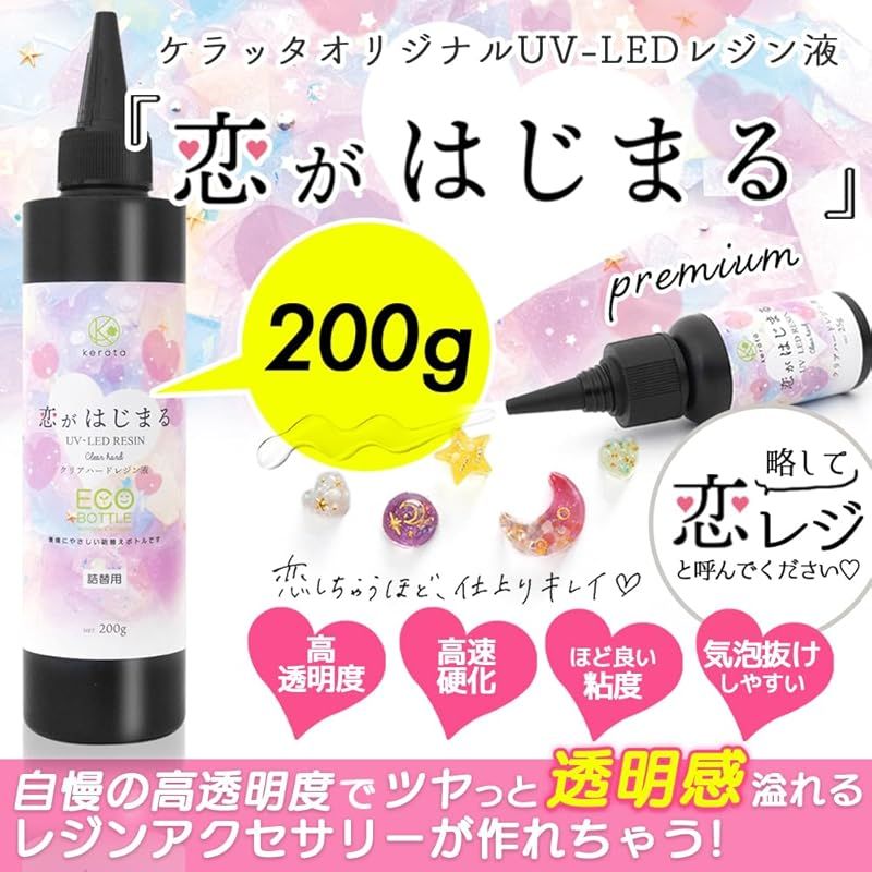 (ケラッタ) レジン液 恋がはじまる ハードタイプ UV-LED 透明 クリア 恋レジ (200g) 1