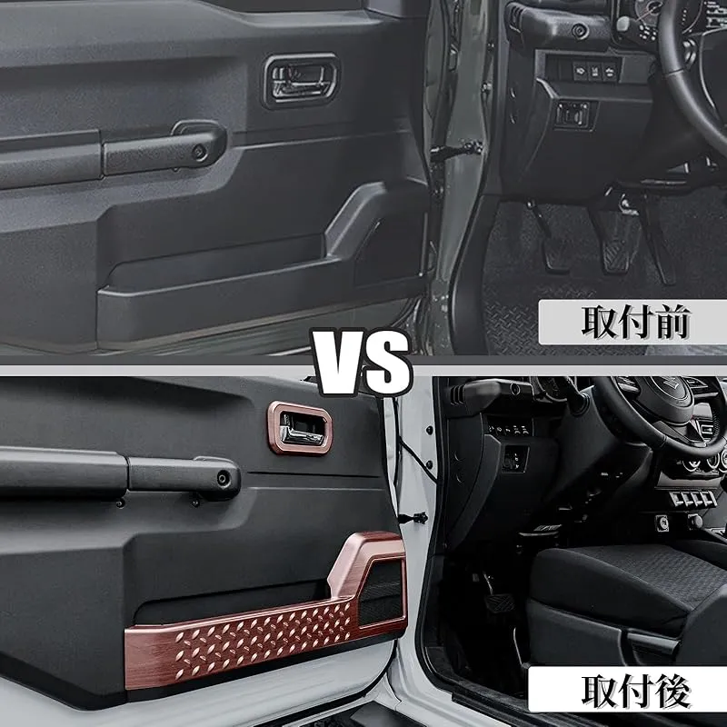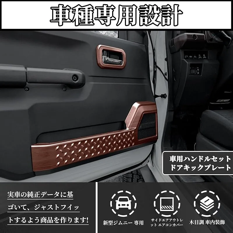 【在庫セール】AMWMORV 新型 ジムニーJB64 木目調 車内装飾 ジムニーシエラ JB74系 車用ハンドルセット ドアキックプレート インテリアパネル カスタムパーツ 0