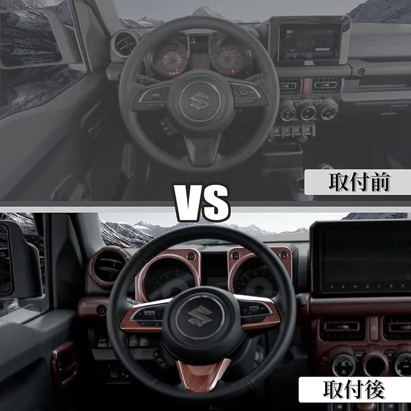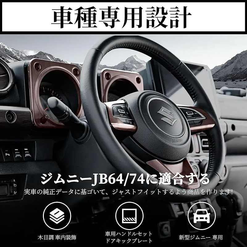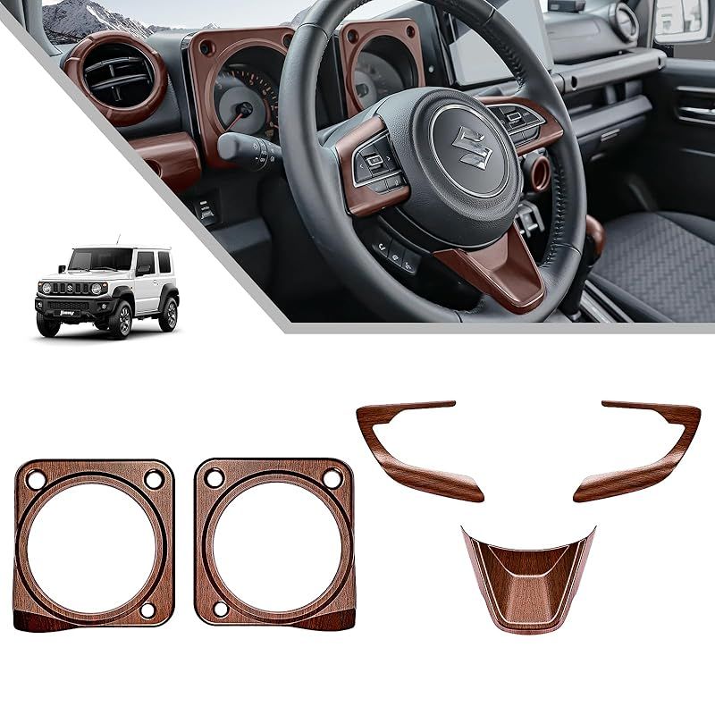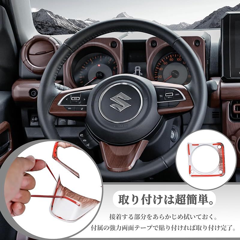 【在庫セール】AMWMORV 新型 ジムニーJB64 木目調 車内装飾 ジムニーシエラ JB74系メーターパネル ドレスアップとステアリングホイーカバー インテリアパネル ABS樹脂 両面テープ付属 カスタムパーツ 0