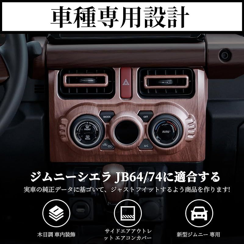 【在庫セール】AMWMORV 新型 ジムニーJB64 木目調 車内装飾 ジムニーシエラ JB74系 インナードアアームレストパネル インテリアパネル カスタムパーツ (吹出口中央制御盤) 0