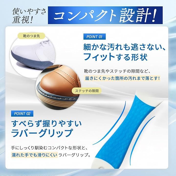 「考え抜かれた使いやすいデザイン」 靴のつま先やソールの縫い目(ステッチ)など、これまで届きにくかった細かい部分にもしっかりフィットする形状に設計。