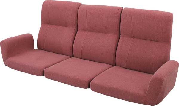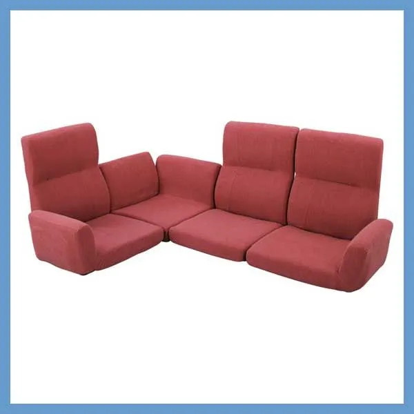 (4点セット)フロアローソファセット(リクライニング機能)「W180-228×D129-177×H60×SH10cm」(カスタマイズ・ファンクションソファ)No.11/レッド