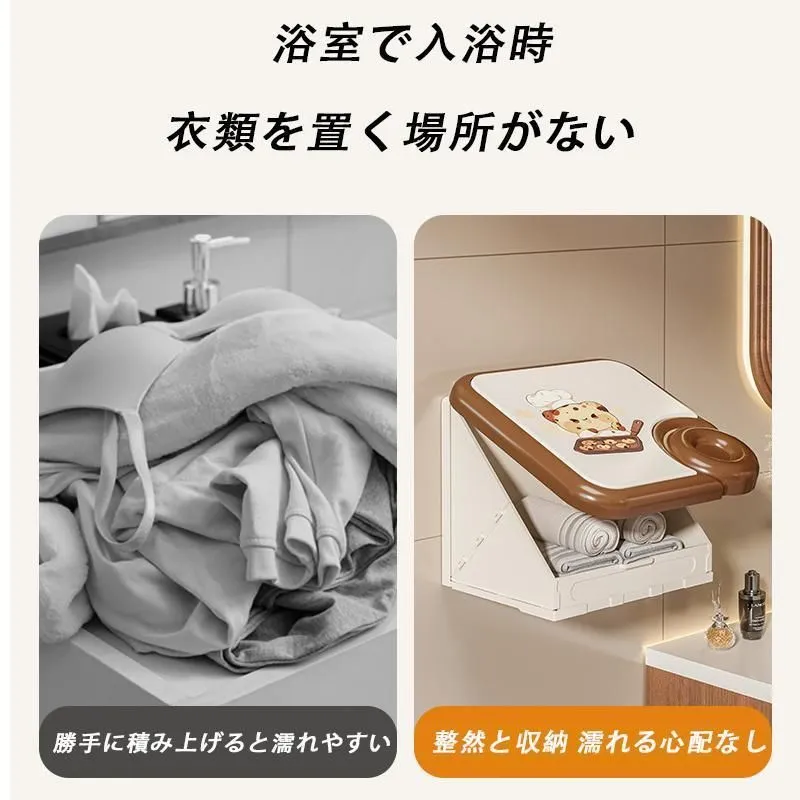 浴室用防水 折りたたみ式収納ボックス タオルラック 収納ラック 壁掛け タオル入れ タオル収納 防水 防湿気 衣類置き場 トイレ お風呂 シャワー