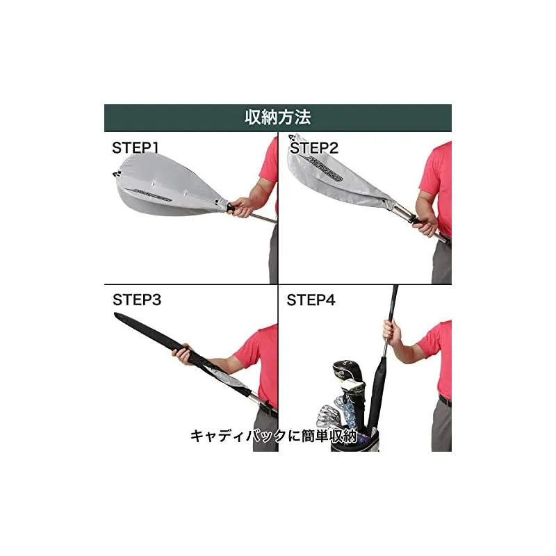 【コンパクトで持ち運びに便利】専用のカバー付き! 傘のように簡単に折り畳めて、キャディバッグに収納できます。練習場での素振り練習はもちろん、コースに持参してラウンド前のウォーミングアップにもおすすめです。