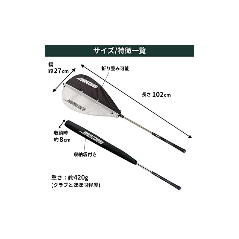 【クラブと同感覚で練習できる】全長1,020mm・重量420g。専用カバー付き。傘のように開くだけだから組み立て不要! 届いたらすぐに練習ができます。