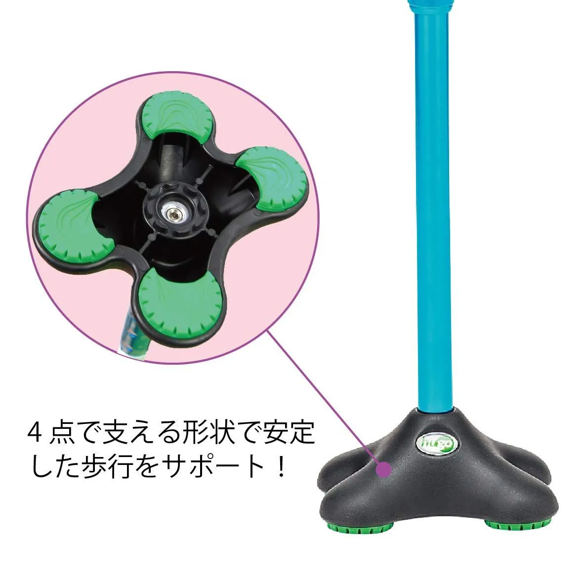 ねばりある杖先がしっかり地面をとらえます、斜めについても滑りにくい。1本杖に比べて接地面積が広いので安定感があります。