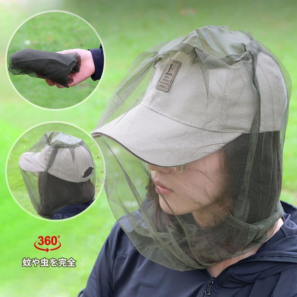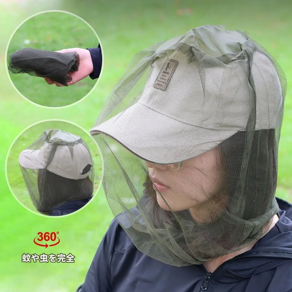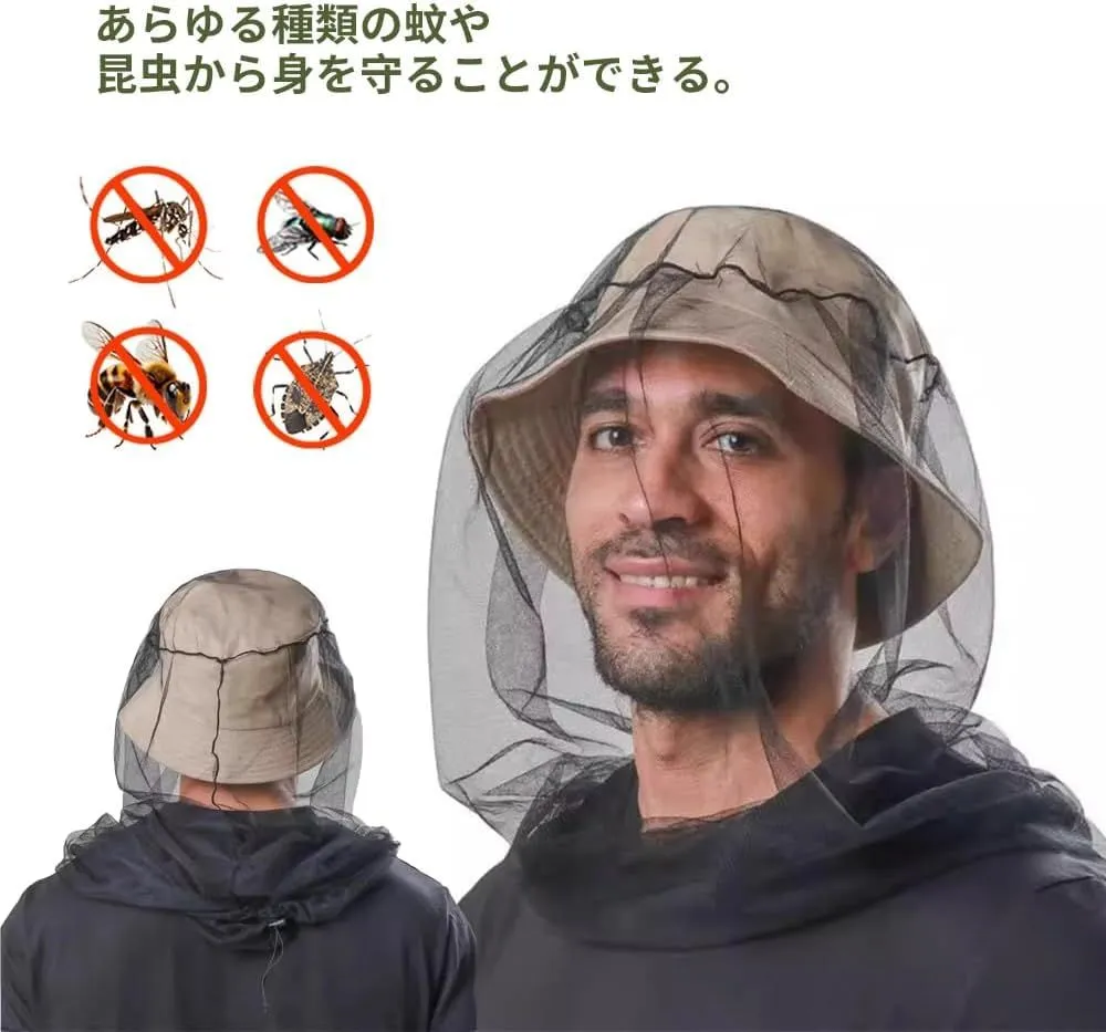 【在庫セール】蚊よけ 虫対策 虫除けネット アウトドア 虫除け帽子 野外作業 庭園作業 頭 顔 虫対策 山登り 釣り カバー 頭部 男女兼用 黒の3点セット
