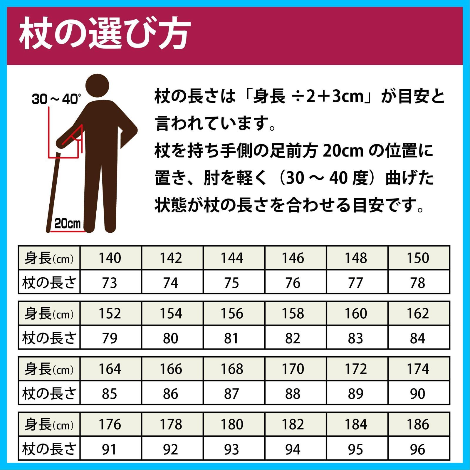 ●サイズ/長さ68~96cm(12段階/2.5cm)、グリップ長さ:約12.5cm、ゴムチップ底径:約5cm