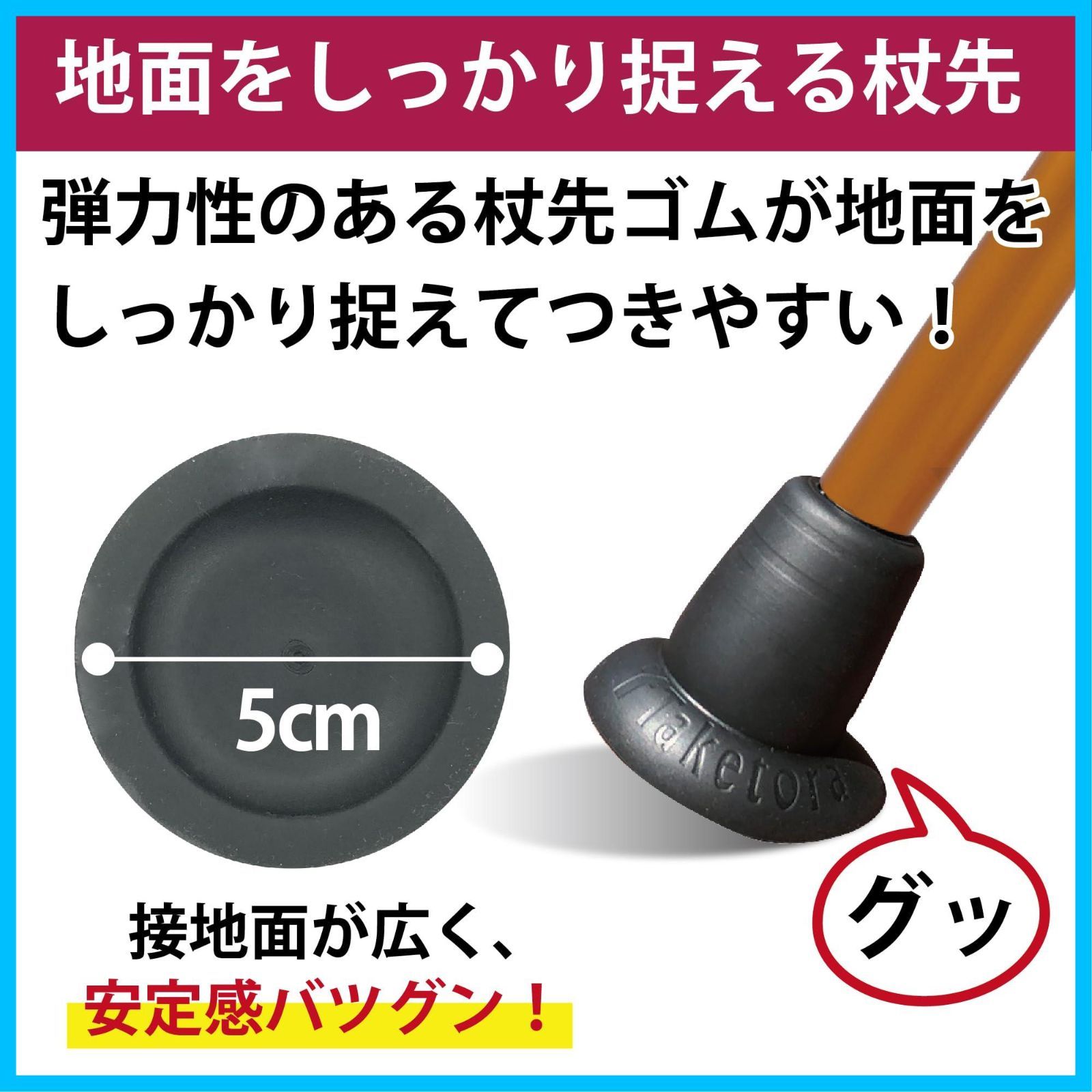 接地面が広く、食いつきの良い、弾力のある円盤状の杖先ゴムで安定感を確保します。