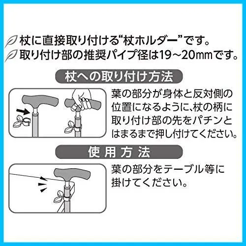 葉の部分をテーブル等に掛けるだけで杖の転倒防止に。