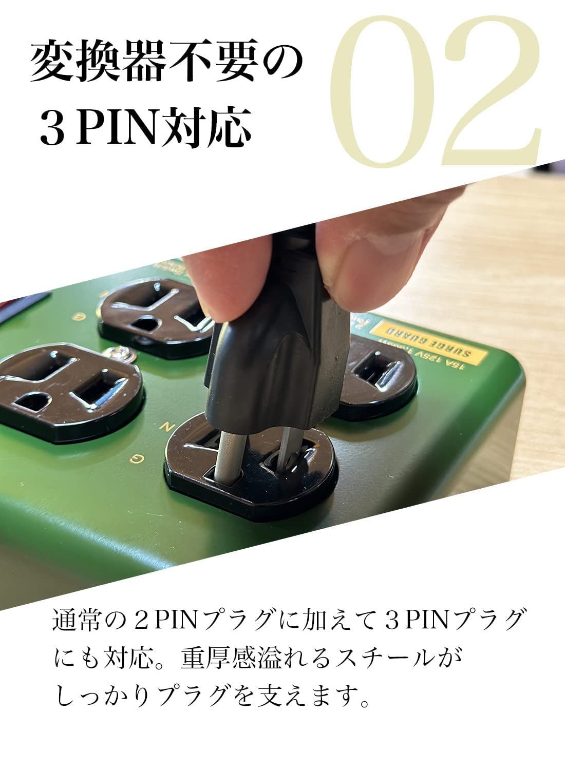 【変換器不要の3ピンプラグ対応】オリーブカラーが映えるAC4個付き! ?
