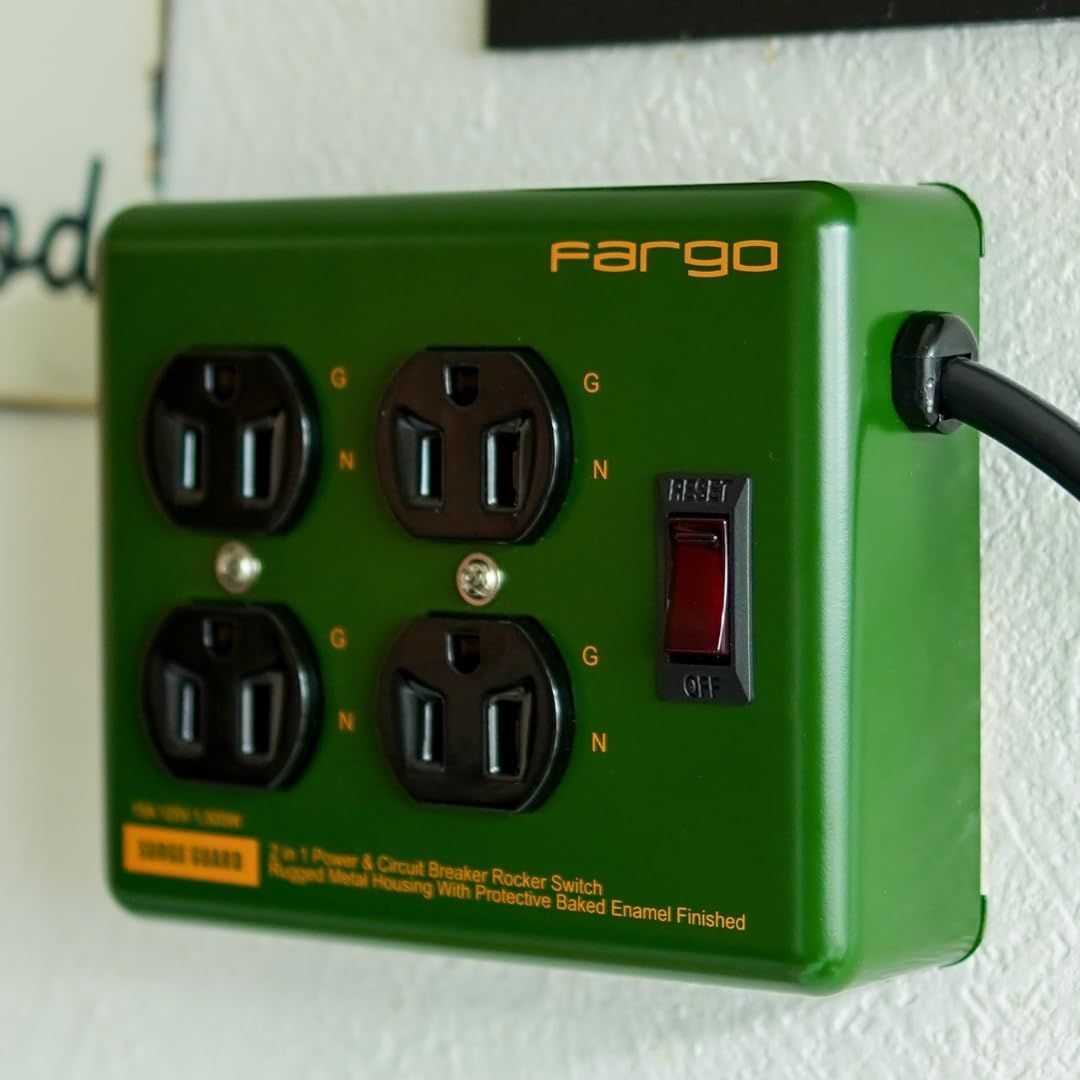Fargo ファーゴ STEEL TAP 電源タップ スチール製 3ピン対応 アース線付き コード 壁掛け 固定 (オリーブ 4個口1.8m)