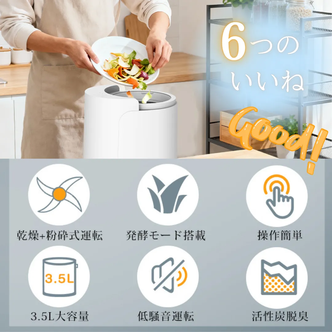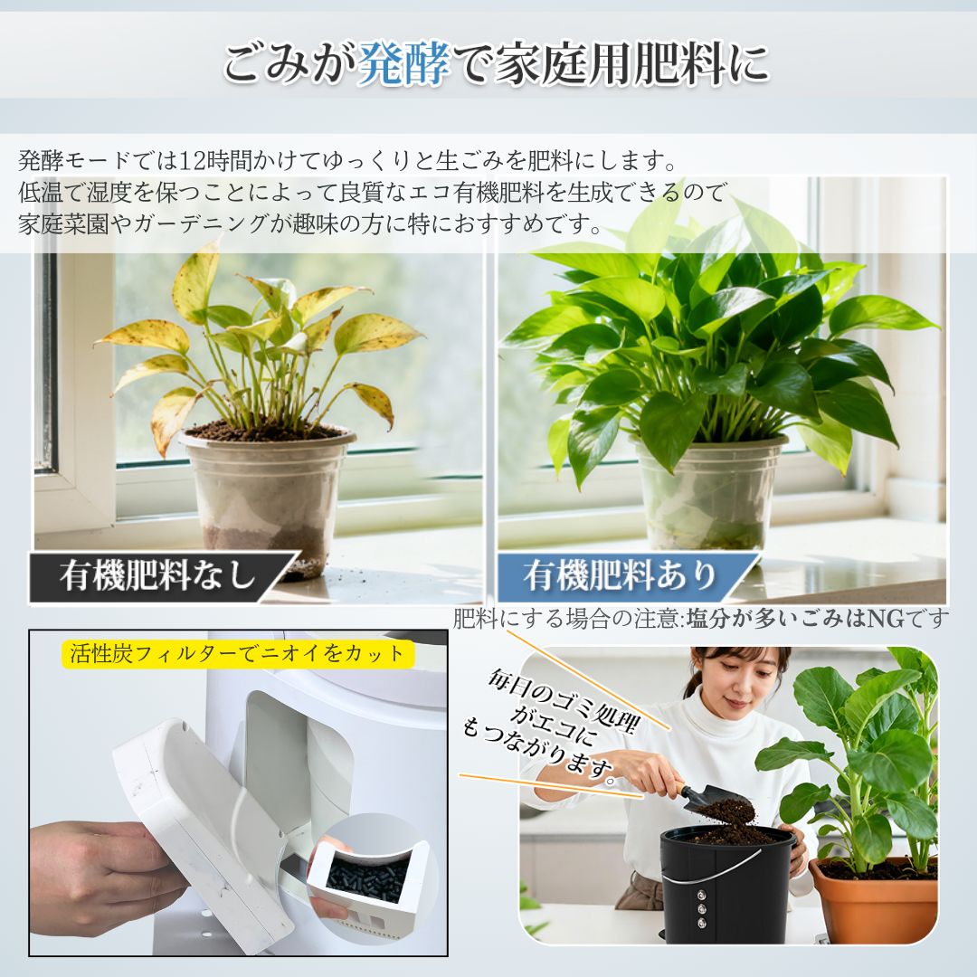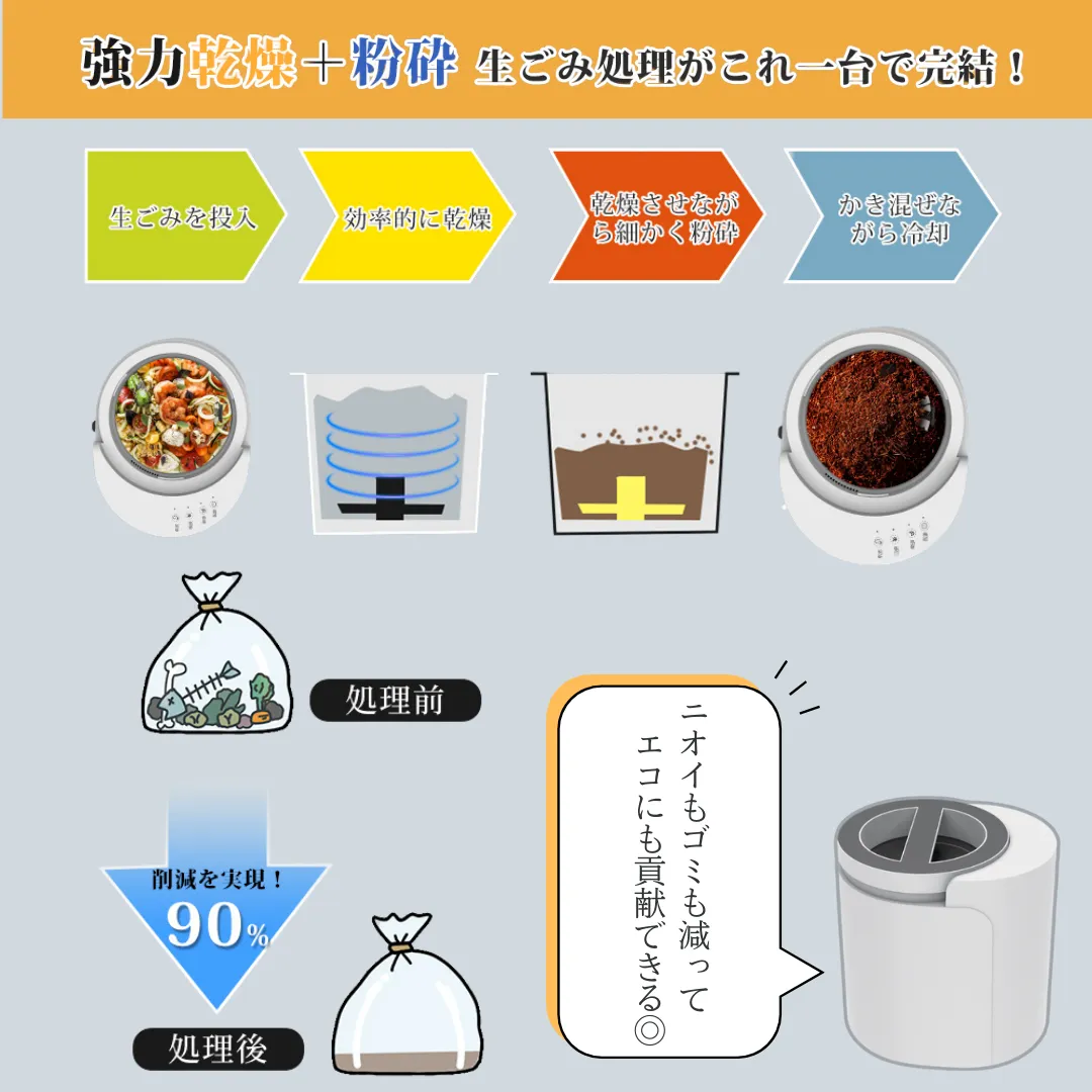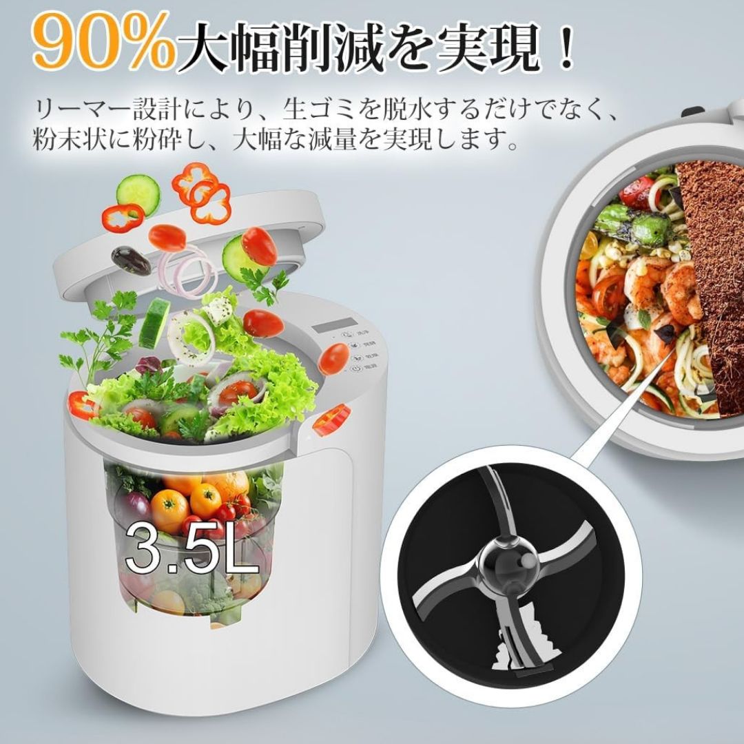 【助成金対象】生ごみ処理機 3.5L 大容量|乾燥+粉砕+発酵|90%削減 低騒音 活性炭脱臭 家庭用 コンポスト 肥料化 自動運転 ワンタッチ