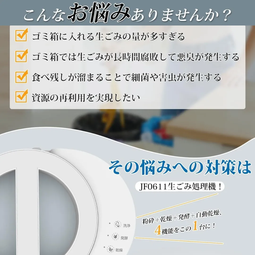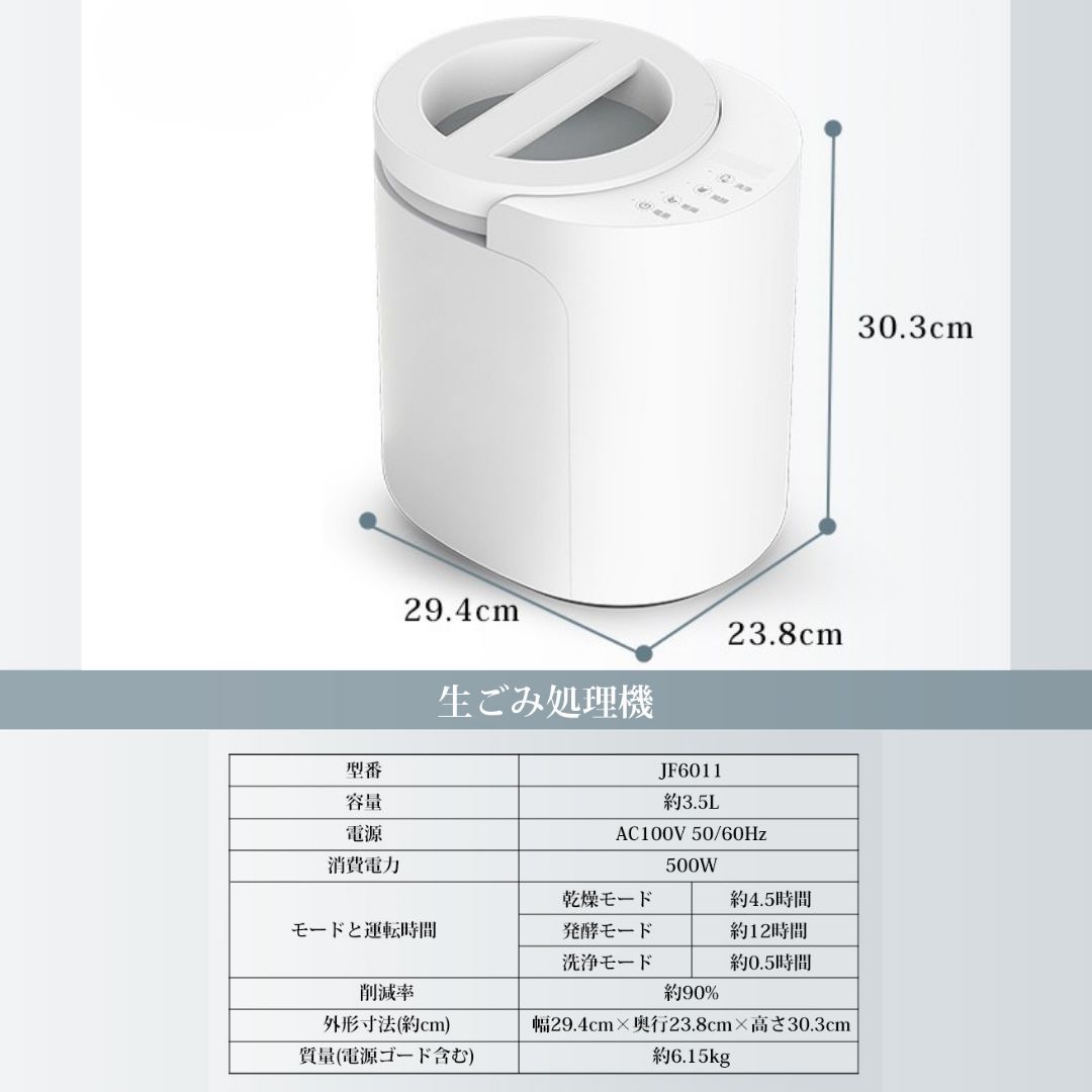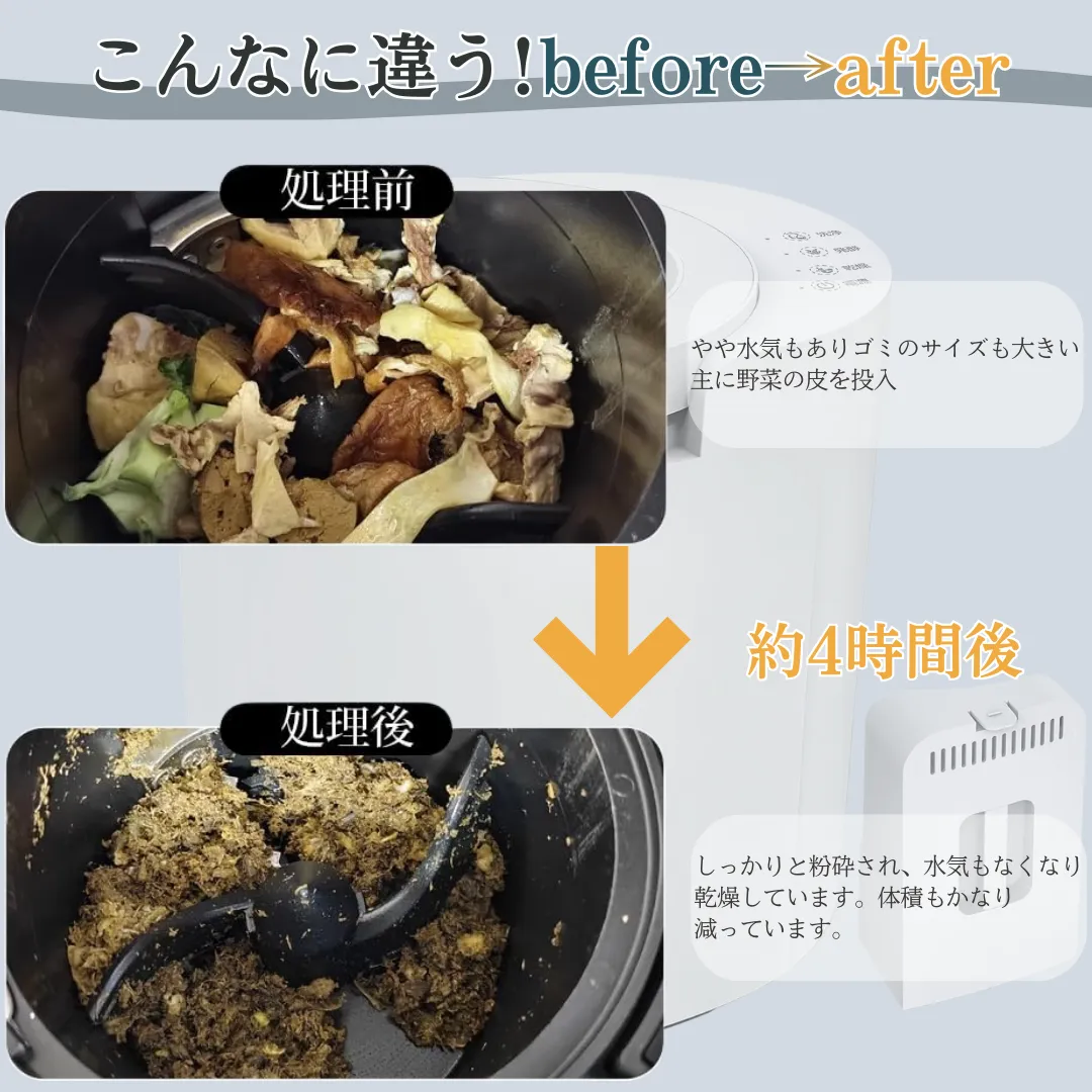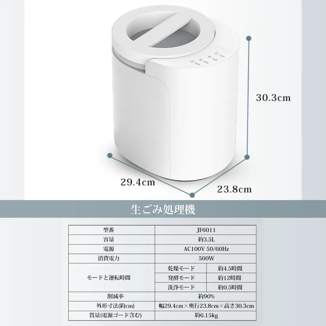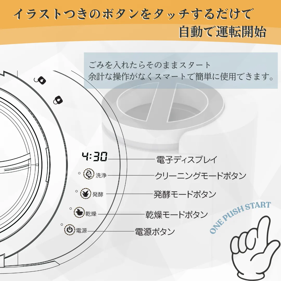 【助成金対象】生ごみ処理機 3.5L 大容量|乾燥+粉砕+発酵|90%削減 低騒音 活性炭脱臭 家庭用 コンポスト 肥料化 自動運転 ワンタッチ