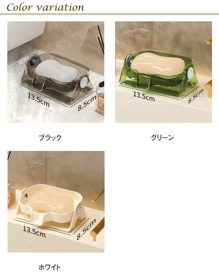 傾きのあるデザインで水を即座に流し、水捨ての手間もいりません.水分で石鹸がヌルヌルするのを抑制してくれます.