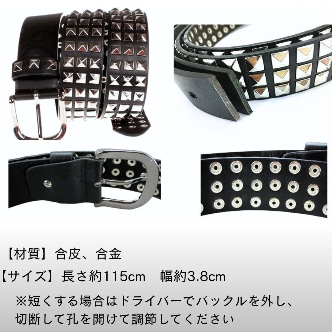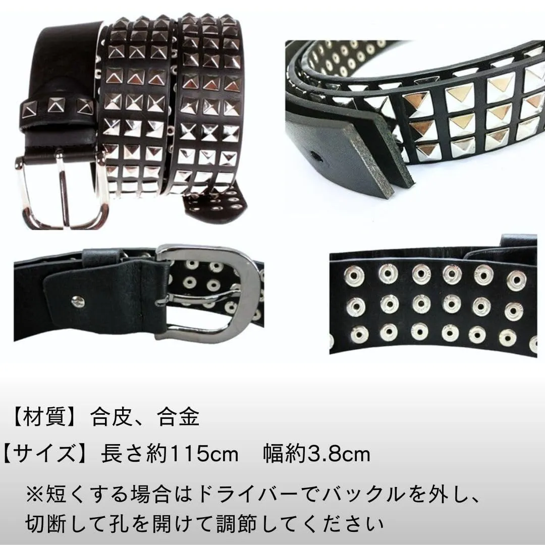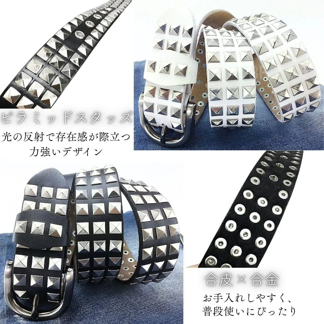 [ミコプエラ] スタッズベルト 3連 ピラミッド 太め 鋲ベルト ロック パンクファッション V系
