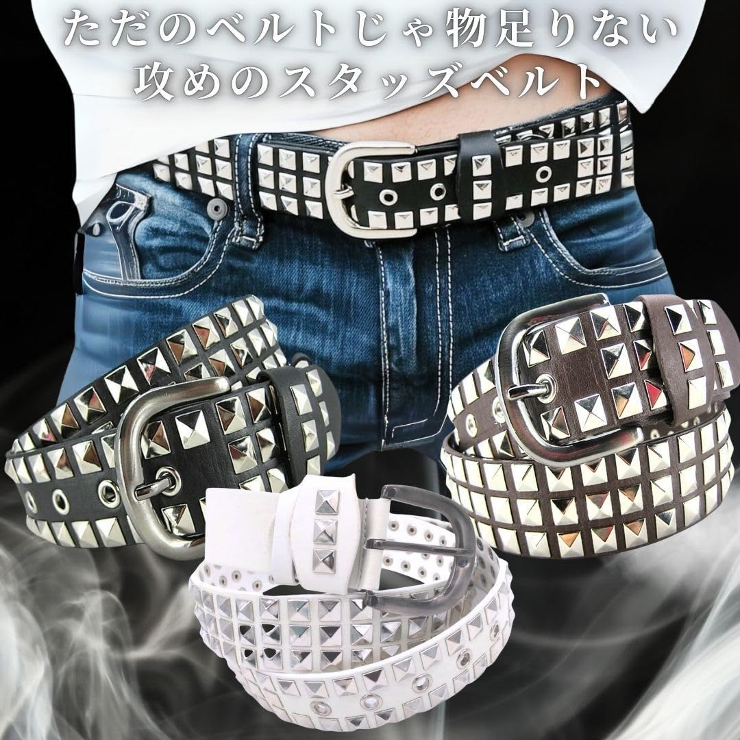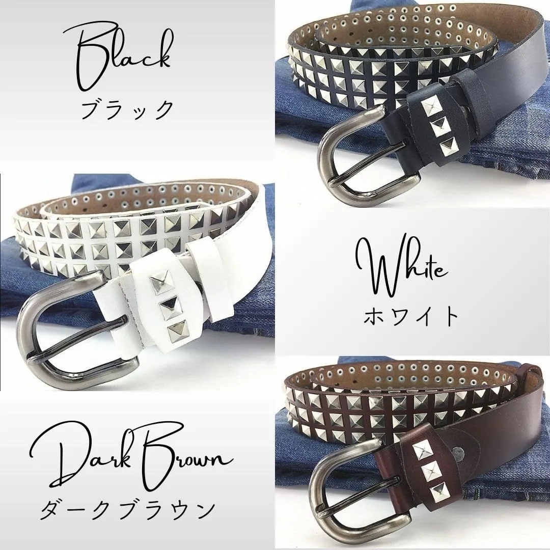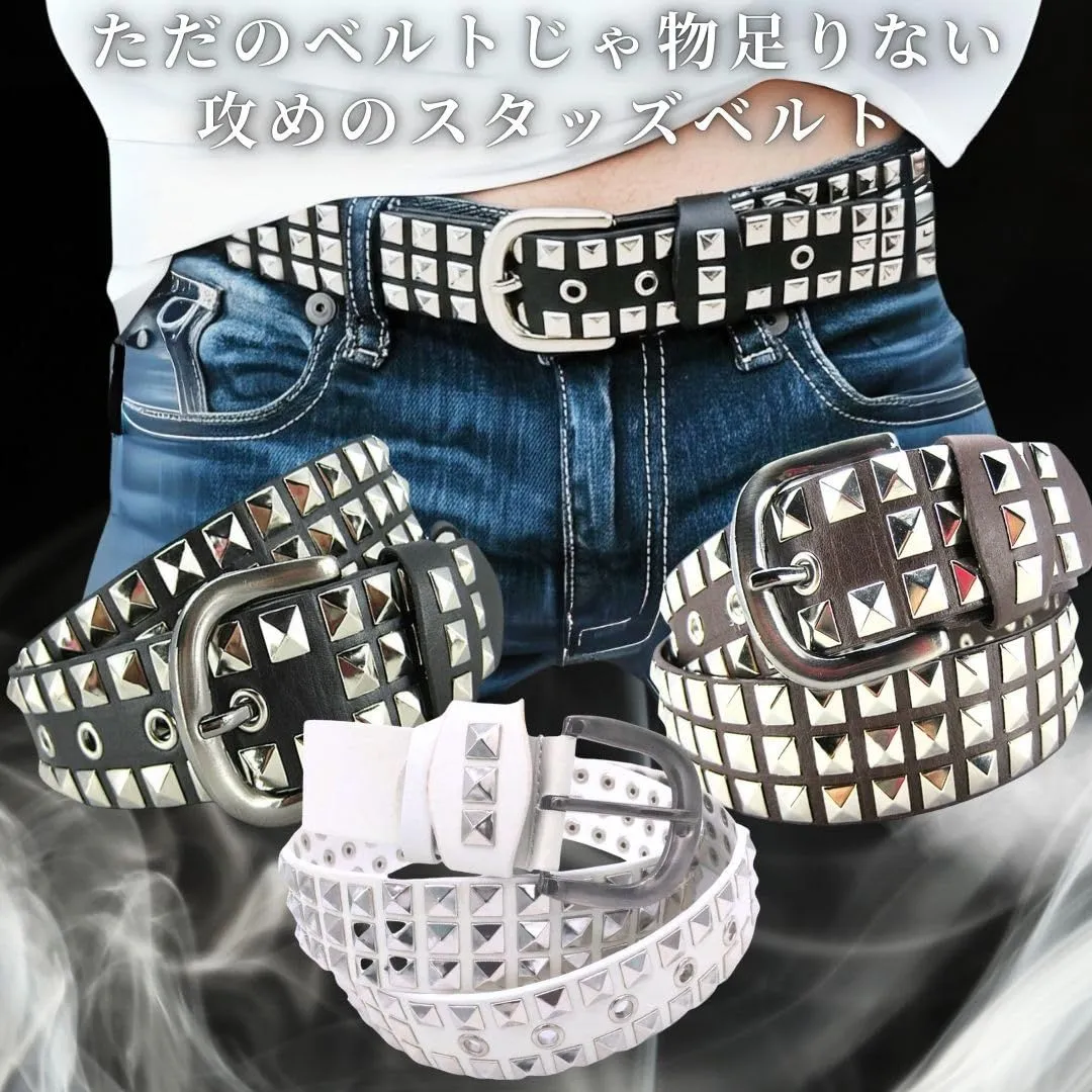 [ミコプエラ] スタッズベルト 3連 ピラミッド 太め 鋲ベルト ロック パンクファッション V系