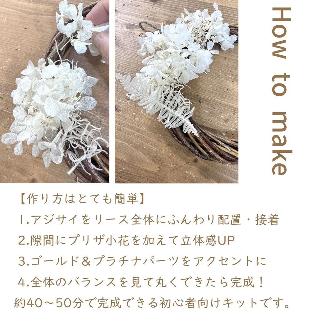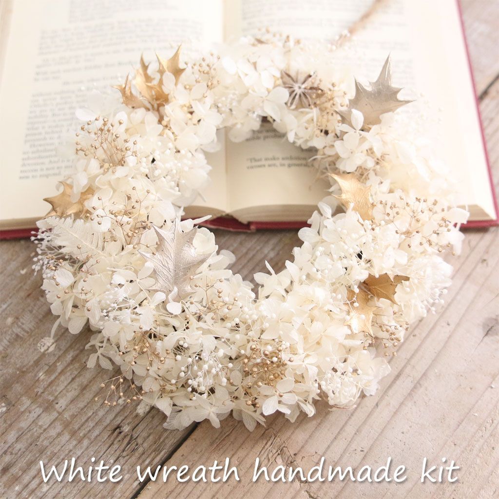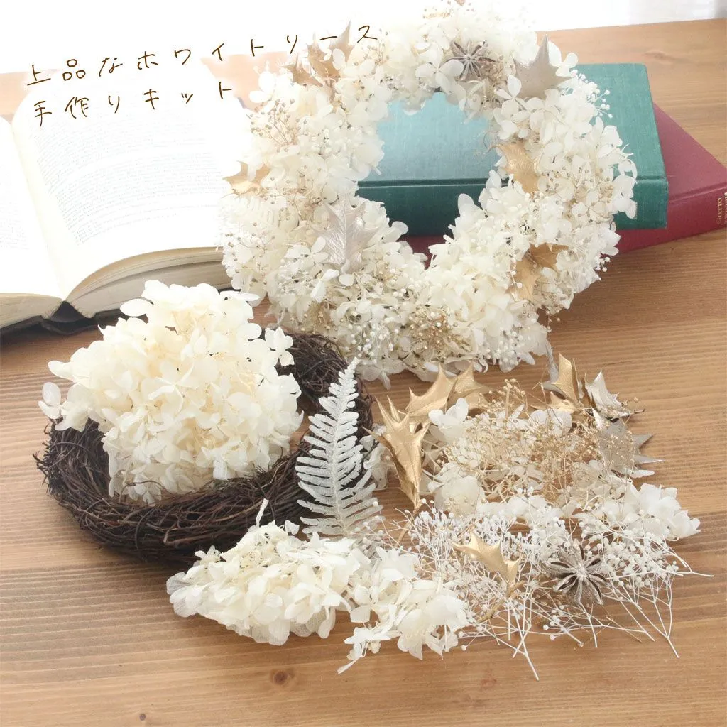 【手作りキット】 ホワイトリース アジサイ プリザーブドフラワー 白 ナチュラル シンプル クリスマス