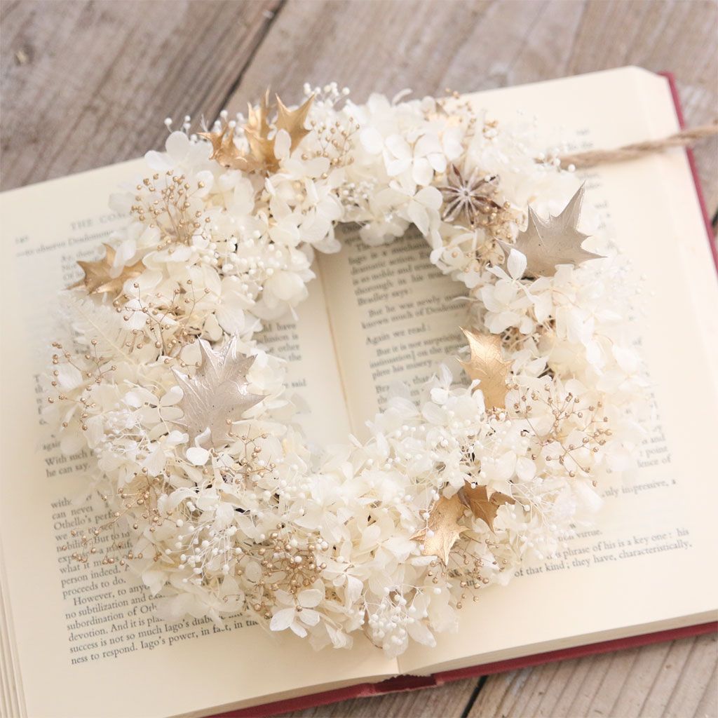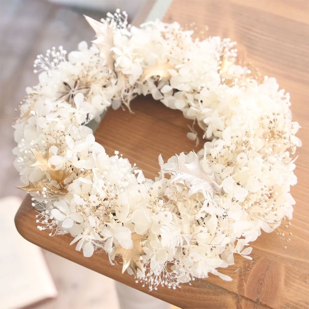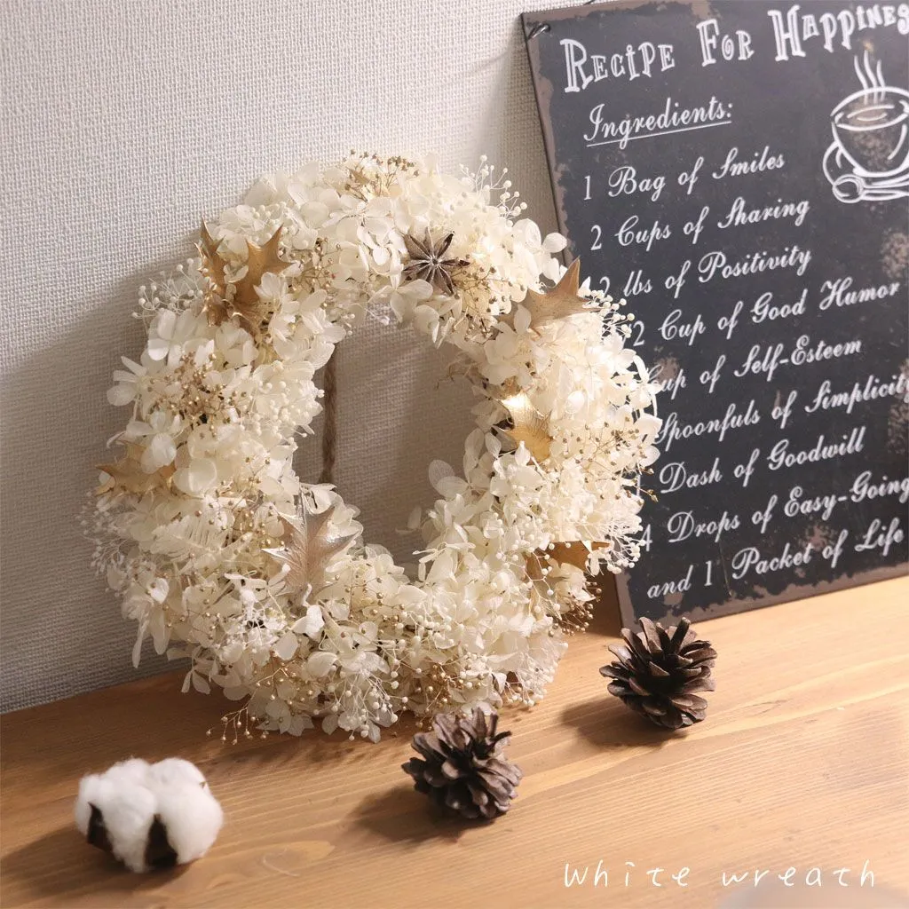 【手作りキット】 ホワイトリース アジサイ プリザーブドフラワー 白 ナチュラル シンプル クリスマス