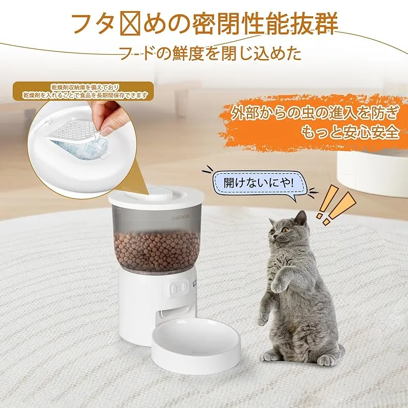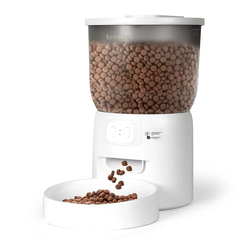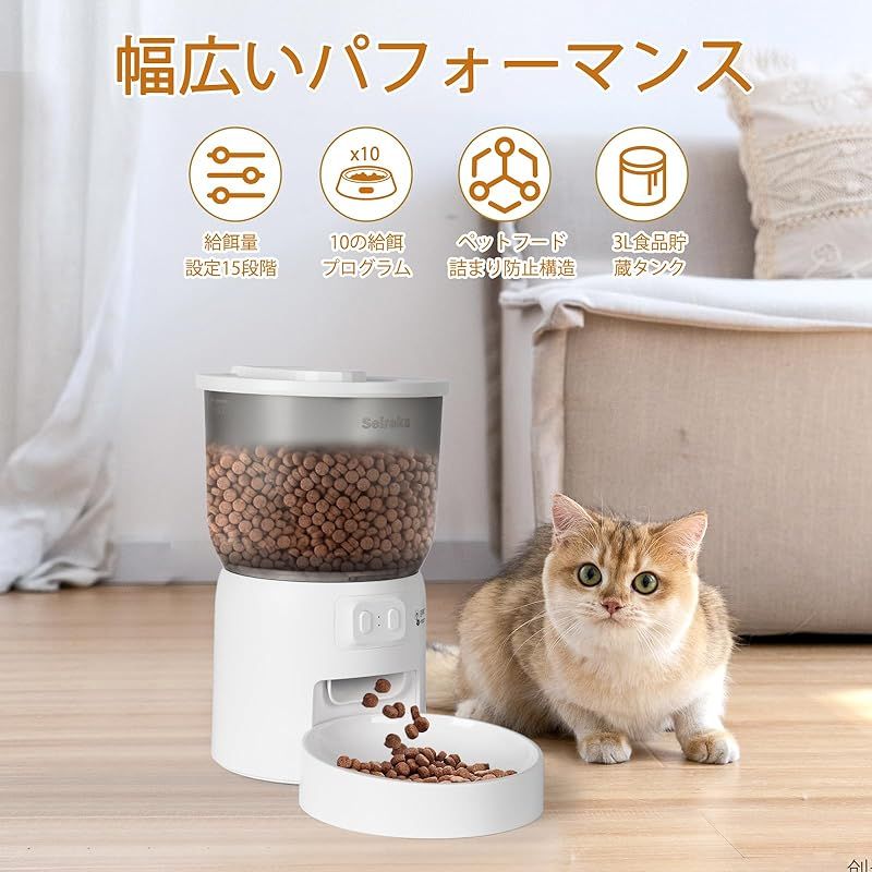 Seiraku 自動給餌器 寝返り防止 遠隔操作対応 早食い防止機能付き 猫用品 ペットフードストッカー 大容量 3L 餌皿セット 子猫・1 匹の猫対応 猫自動餌やり機 リモコン操作可 給餌器 猫専用 タイマー機能 保存容器付き 1