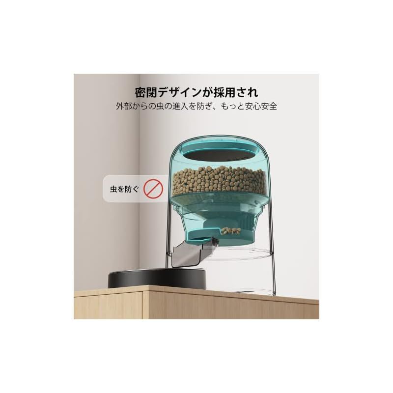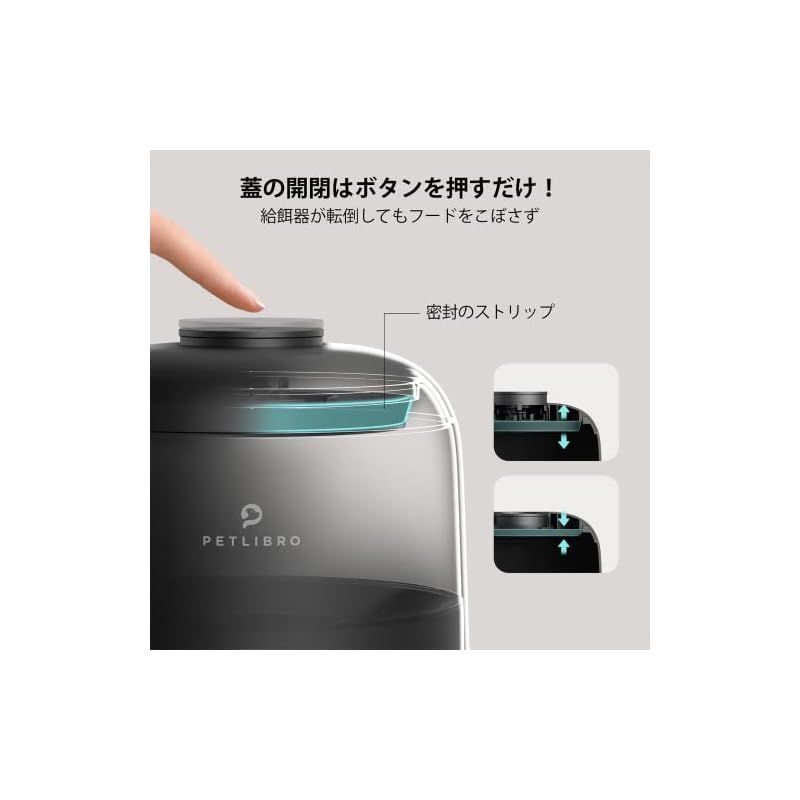 【いつでも開封したてのおいしさ】2023新登場のPETLIBRO自動給餌器AIRはこれまでのお客様の声を集め、基本的な給餌機能を満たすとともに、フードの新鮮さに焦点を当て、製品改良を行った。給餌器の蓋はシリコンストリップを内蔵し、しっかり閉まって湿気を寄せ付けない。また、ベース部分のローターは密封設計を採用し、給餌時間を除いて、タンク内部とフード排出口に隙間がなく密封状態を維持し、虫の侵入を防止する。このような厳密な設計により、ペットが食べるすべてのフードが新鮮で、衛生的であることをします。