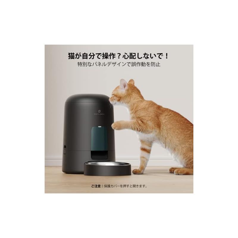 【ペットの誤操作防止】 いたずらな爪がボタンを押して給餌スケジュールを変えるのではないかと心配? 心配しないで、餌やり器の操作パネルに保護カバーが付き! 給餌スケジュールを設定した後、カバーを閉めれば、ペットの誤動作を防止。 また、給餌器の動作状態がタイムリーに分かるように、餌の残量が少ない時、電池の残量が少ない時、また餌が詰まっている時に保護カバー上方のスマート表示ランプが赤く点滅する。一目で明らかにわかる表示ランプにより、給餌器の異常を早く知らせてくれ、ペットの空腹を防ぐ。 ??