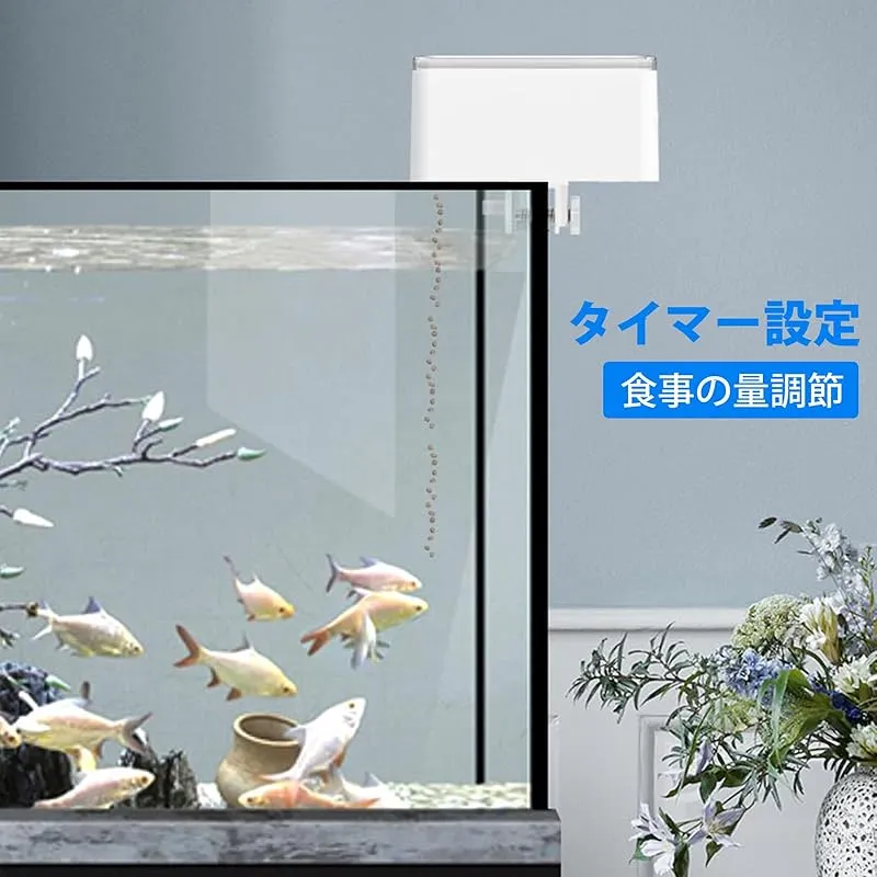 魚自動給餌器 ミニ 自動餌やり機 餌やり器 配給量調節可能 簡単設置 超静か 最大72時間の時間調整が可能 小魚の 水槽や小魚の飼育に最適 1