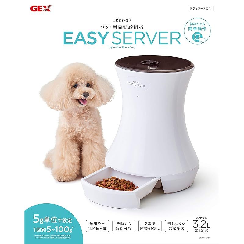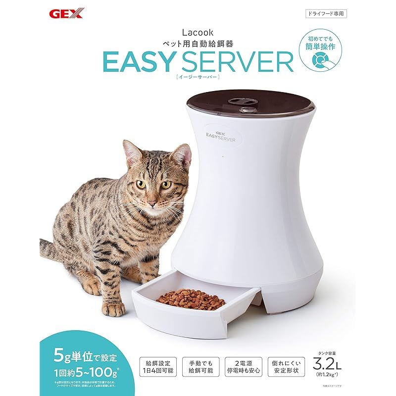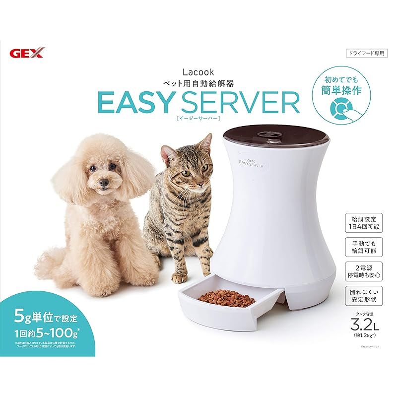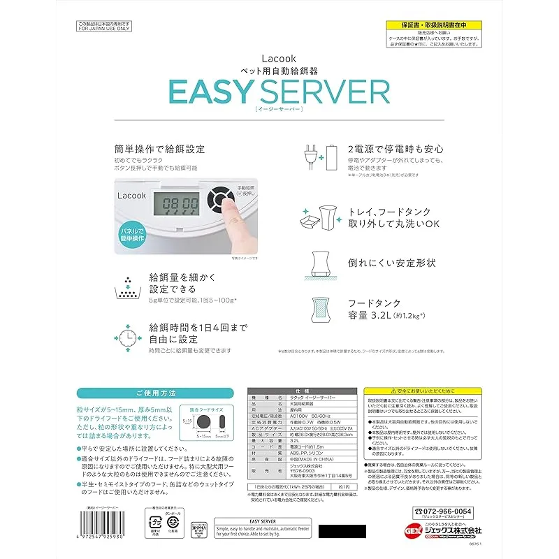 ジェックス Lacook EASY SERVER 自動給餌器 1日4回 安心の2電源 お留守番にも [ペット用] 0