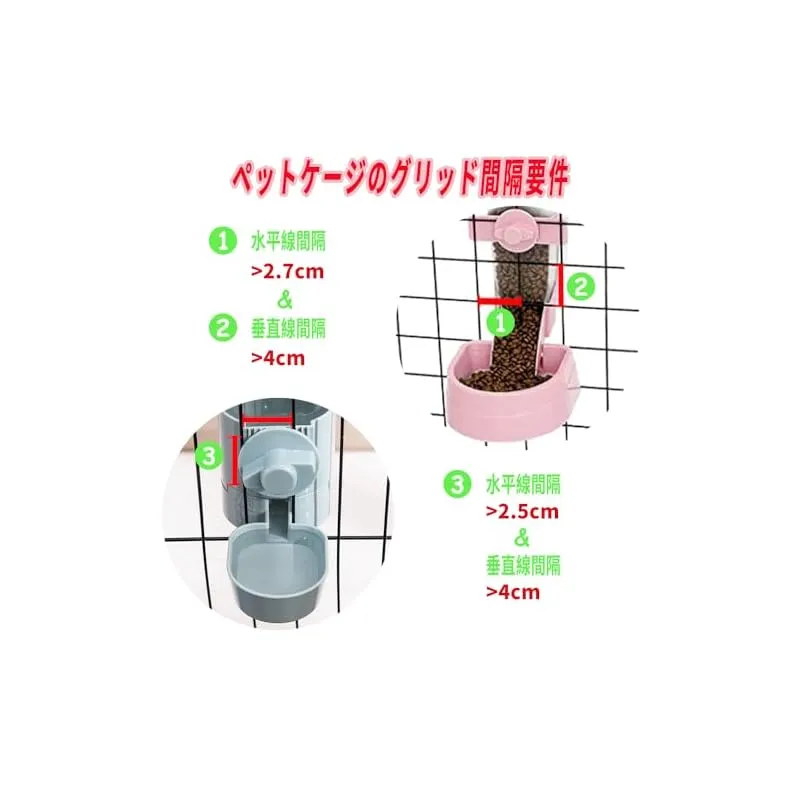 【取り付け高さは調節可能】:内側と外側の2か所のネジでゲージにしっかり固定することができます。高さの調節が可能なのでペットの大きさによって調節することができるのも嬉しいポイント! パッケージに含まれるもの:自動給餌器×1/自動給水器×1 注意事項: 1、寸法は手作業で測定しており、1~2cmの誤差がありますが、これは通常のことです。 2、もし受け取った商品に瑕疵などがあったら、すぐに連絡してください。