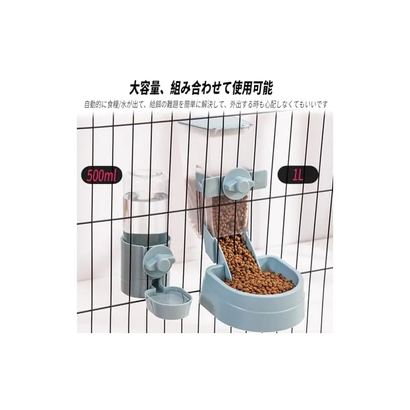 小動物 重力式自動給餌器 自動水飲み器 電源不要 猫 犬 ケージ 固定 給水器 自動餌やり機 留守番 自動給餌器セット 転倒防止 固定 ウサギ餌入れ 取付型 0