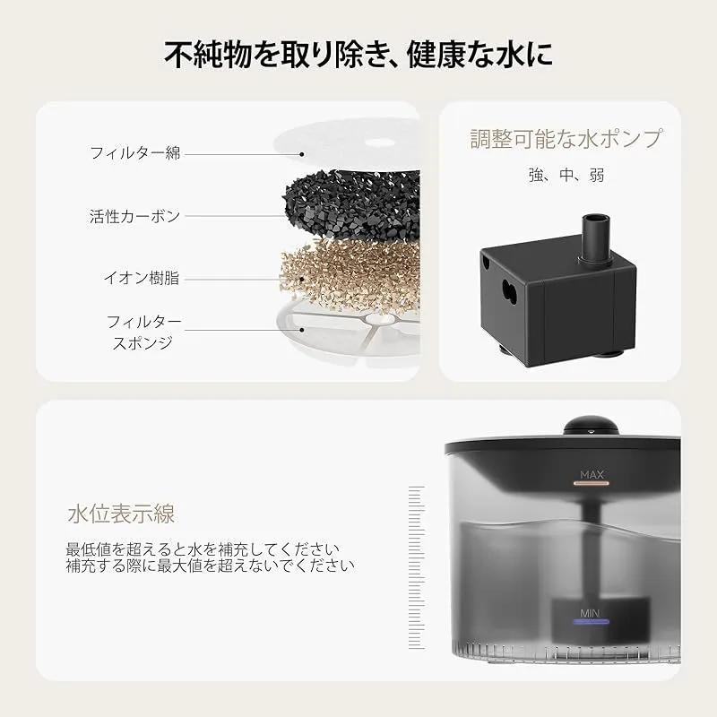 【水洗い可 清潔衛?】:ボウルは食品級ABS材質採用して耐久性がよく、取り外してお手入れしやすいです。長年でも衛生的に使えます。蓋、フードタンク、餌 ベースの取付/分解/水洗いは非常にやすいです。また本体は水洗いできませんので、固く絞った布で拭いてください。