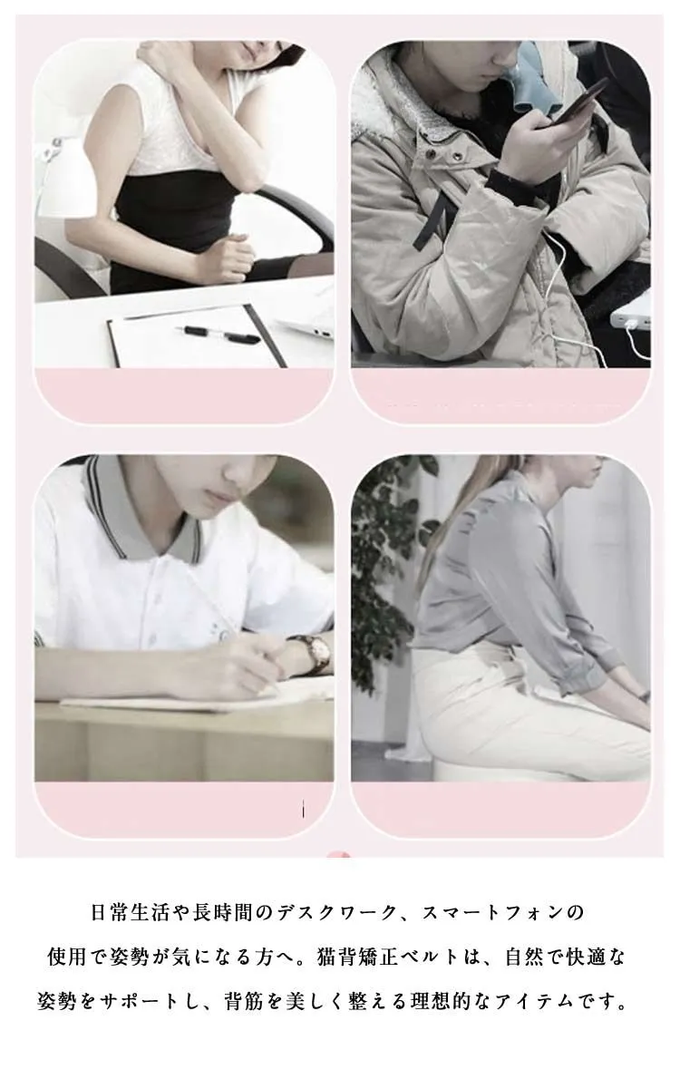 【猫背矯正 & 姿勢改善】背筋を自然に伸ばし、肩の位置を正しく保つことで猫背や巻き肩を効果的に矯正します。姿勢を改善することで、体のバランスが整い、健康的なライフスタイルをサポートします。
