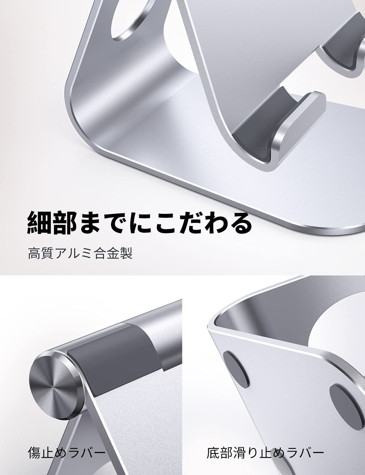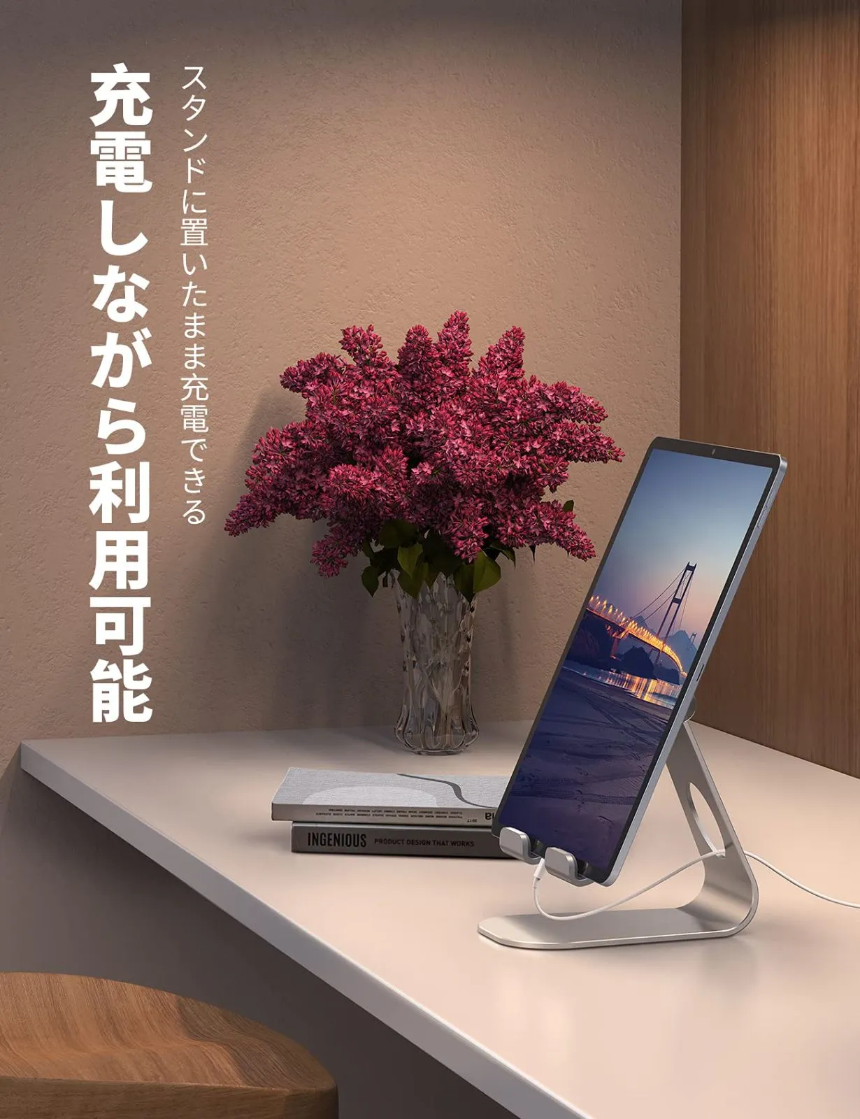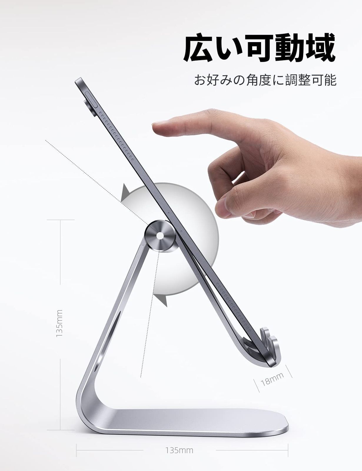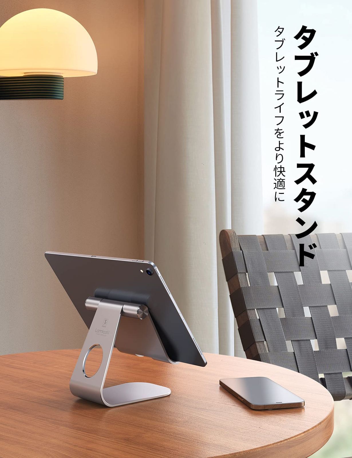 タブレット スタンド アルミ ホルダー 角度調整可能 Lomicall stand : 卓上 縦置き スタンド タブレット 置き台 デスク台 立てる 設置 aluminium テレワーク 在宅 ワーク Zoom 会議 タブレット対応(4~13'') ミニ エア プロ ipad 10 第十世代 ipad9 第九世代 ipad Air mini Pro第六世代 S7 S8 Note 対応 - シルバー