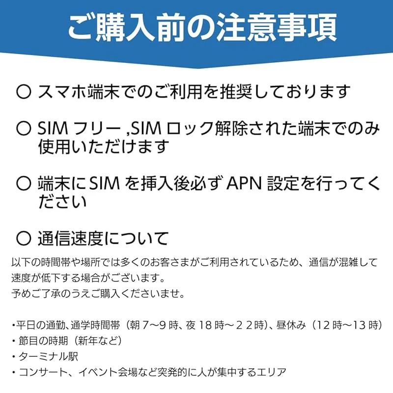 【本人確認なし、使い捨てタイプ】クレカや口座などの面倒な手続きなし。届いたその日にAPN設定すればご利用いただけます。日本国内で使用する場合は技適マークが付された端末で使用してください。