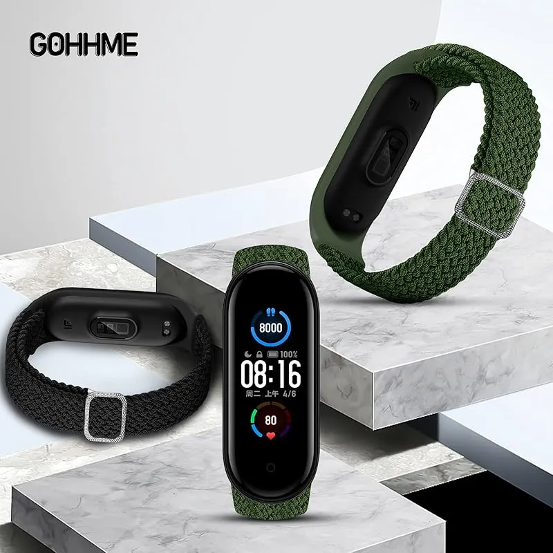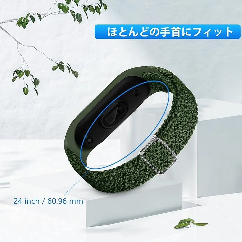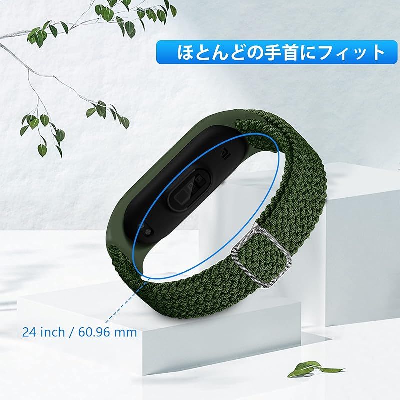 【在庫セール】[GOHHME] For Xiaomi Mi Band 7 バンド 2枚セットMi Band 6 対応ナイロンバンド Mi Band 5 コンパチブルバンド 交換バンド ナイロン スポーツバンド Mi Band 7用スポーツウォッチバンド 柔らか 色:ブラック/グリーン 商品タイプ:design,office